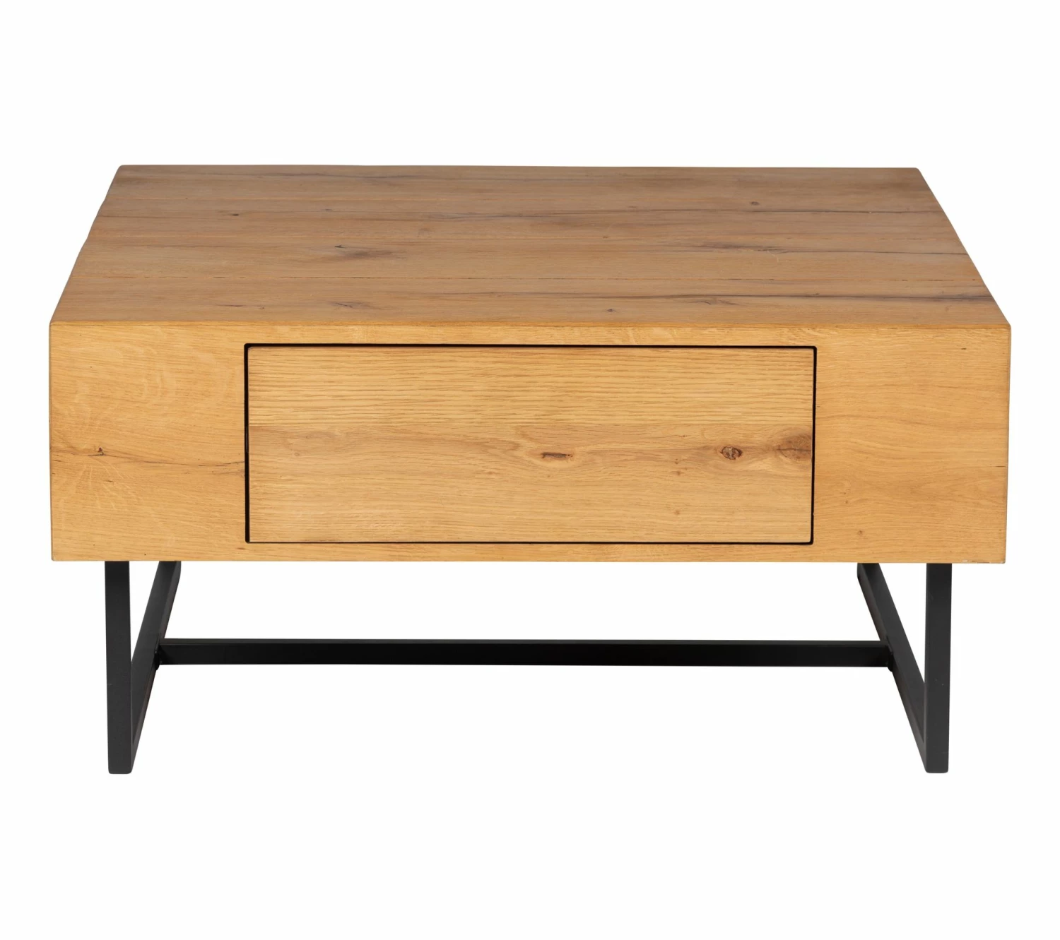 Cette table basse au placage chêne WOODS se distingue par sa finition en bois huilé, parfaitement mise en valeur par son piètement en acier recouvert d’époxy noir. Elle trouvera facilement sa place dans un salon de style factory, en complément d’un grand canapé club en cuir noir.