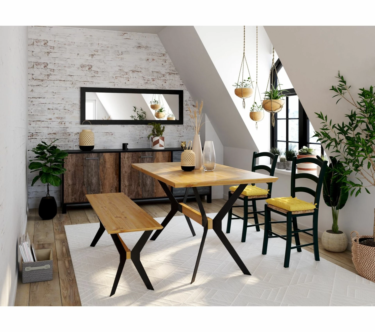 Vous souhaitez acheter un nouveau banc en chêne massif et métal noir? Ce modèle à la conception de qualité ne manquera pas de vous séduire. Son premier avantage réside dans sa fabrication européenne. Vous apprécierez d’ailleurs le soin apporté aux finitions. Le banc EMELINEest livré en 2 colis avec une notice d’instructions. Il se compose d’un plateau et d’un panneau de raccordement en chêne massif. Ceux-ci reposent sur un solide piètement en métal. L’assemblage de ces pièces est d’une grande simplicité. Votre produit est couvert par une garantie de 2 ans. Un chiffon doux suffit pour l’entretien.