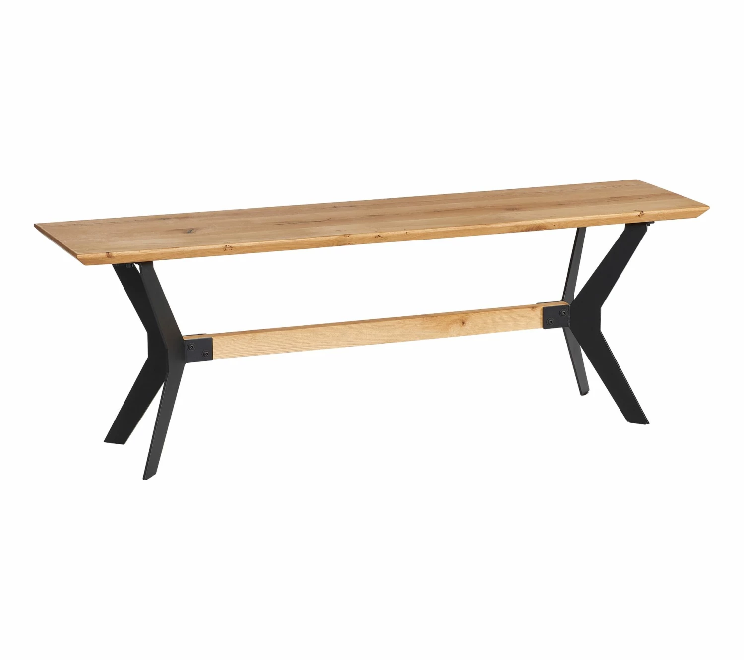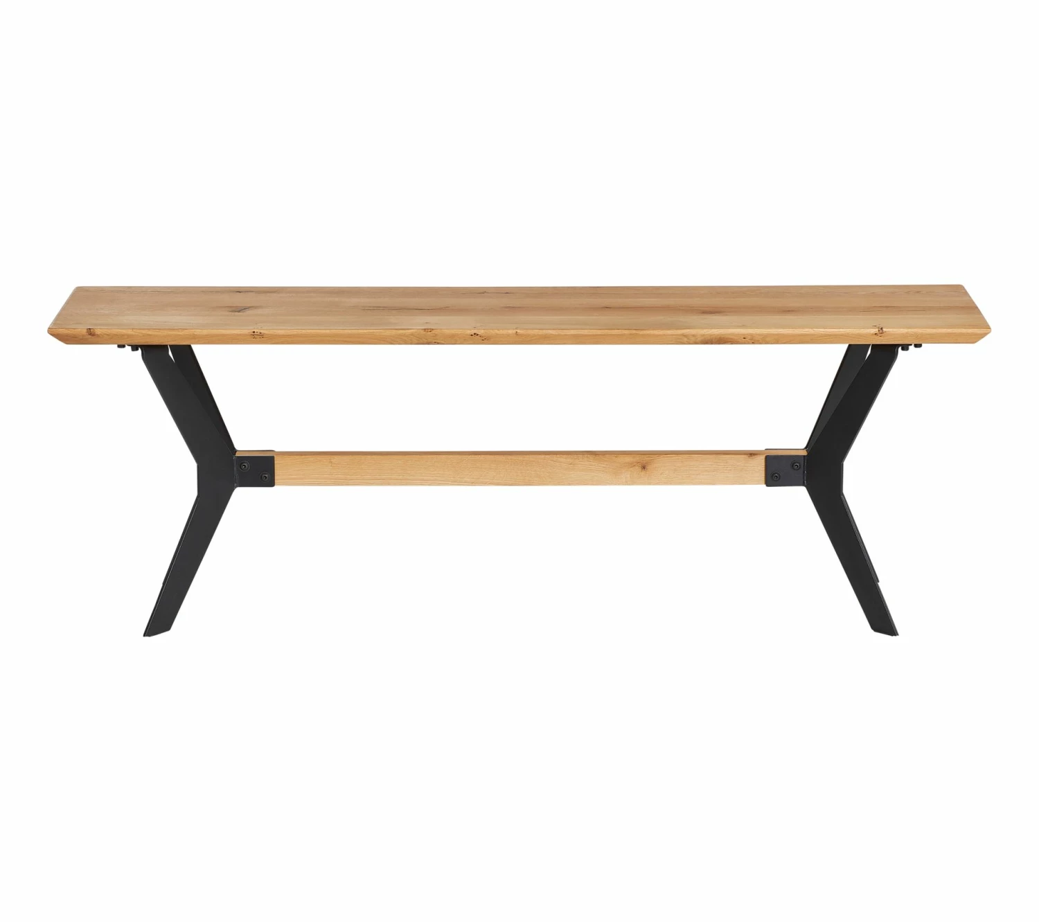 Ce banc de L. 140 x H. 47 x P. 36 cmaffiche un look industriel. Celui-ci résulte de l’alliance du chêne massif à finition huilée au métal revêtu de poudre noire. Vous pouvez compléter l’achat de ce banc avec la table EMELINEassortie. Le rendu sera harmonieux dans votre intérieur.