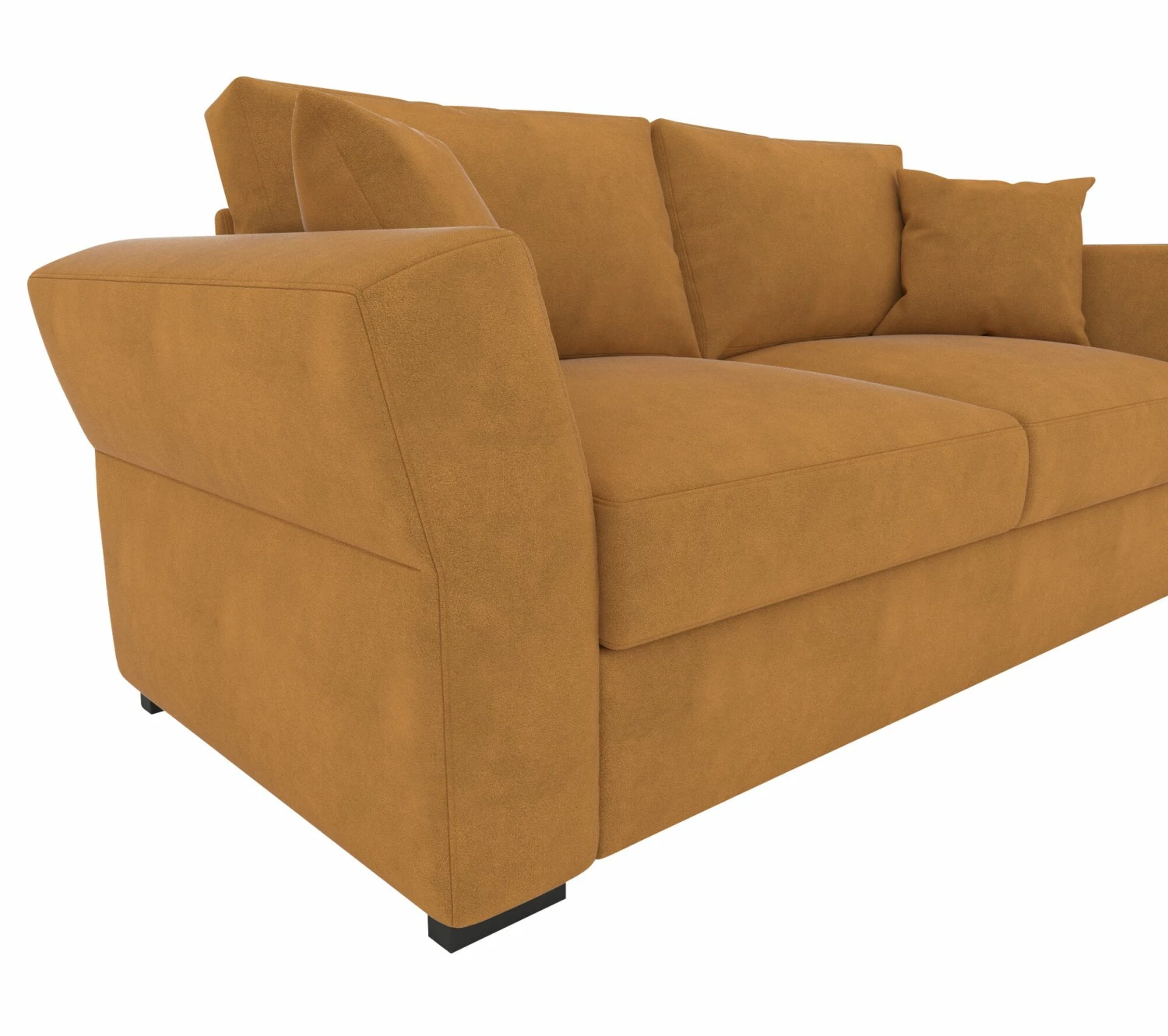 L’assise ferme de ce canapé 3 places révèle un grand confort. Pour cela, elle est agrémentée de mousse polyéther de 28 kg/m3 et de ouate polyester de 200 g/m². La garniture du dossier de ce canapé de L. 196 x P. 85 cm se compose de flocons de mousse polyéther et de plumes de canard.
