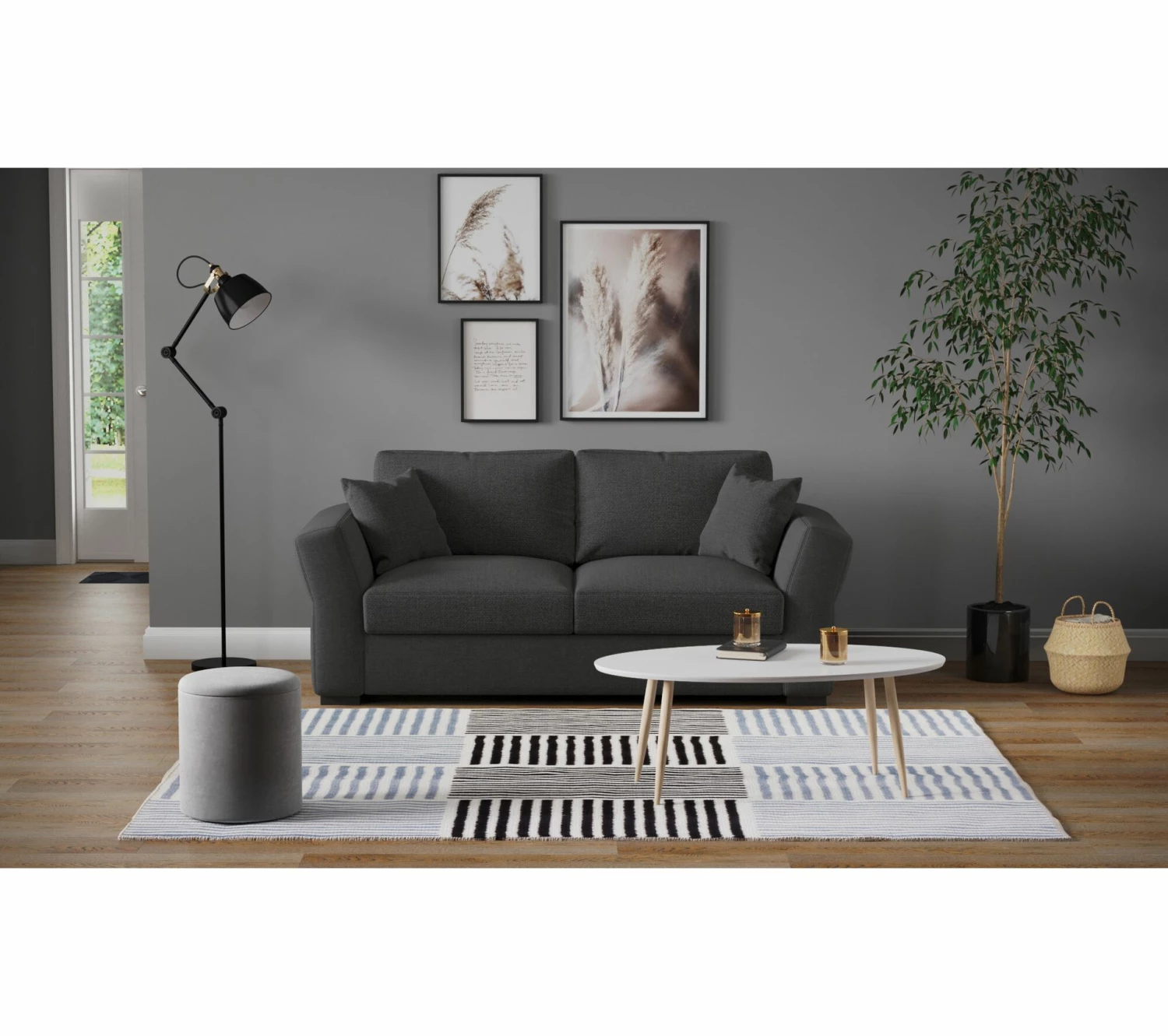 Très enveloppant, ce canapé gris graphite possède des accoudoirs hauts et des coussins bien rebondis. L’assise est en mousse polyéther d’une densité de 28 kg/m3 et en ouate polyester 200 g/m². Le dossier de ce canapé 3 places est constitué à 25 % de plumes de canard, gages de moelleux supplémentaire.