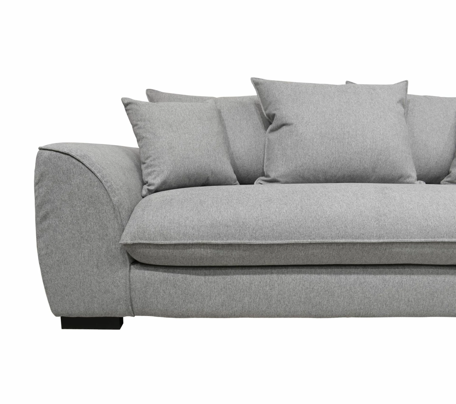Craquez pour ce canapé gris qui s’accorde naturellement à tous les coloris et à tous les styles de décoration. Il est revêtu d’un tissu de qualité au toucher doux. Ce canapé moderne repose sur des pieds avant en hêtre wengé verni. Les pieds arrière sont en plastique noir.
