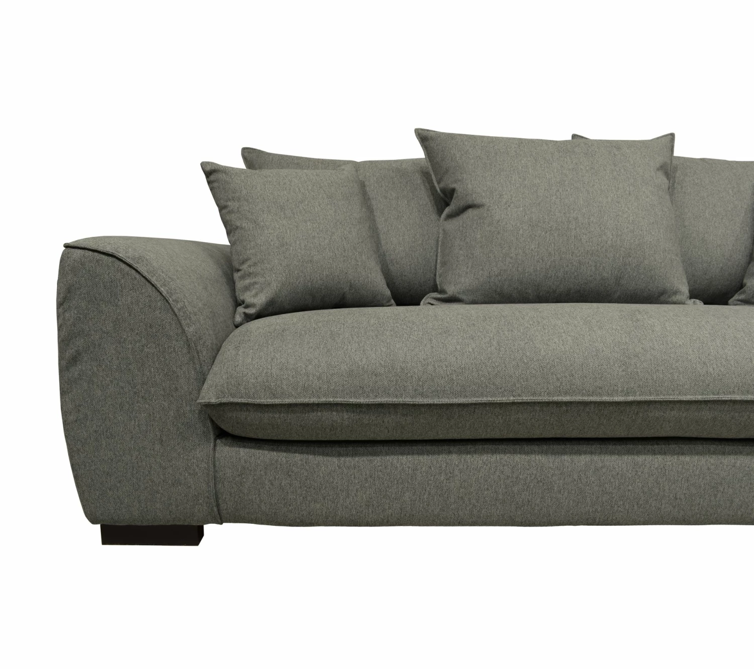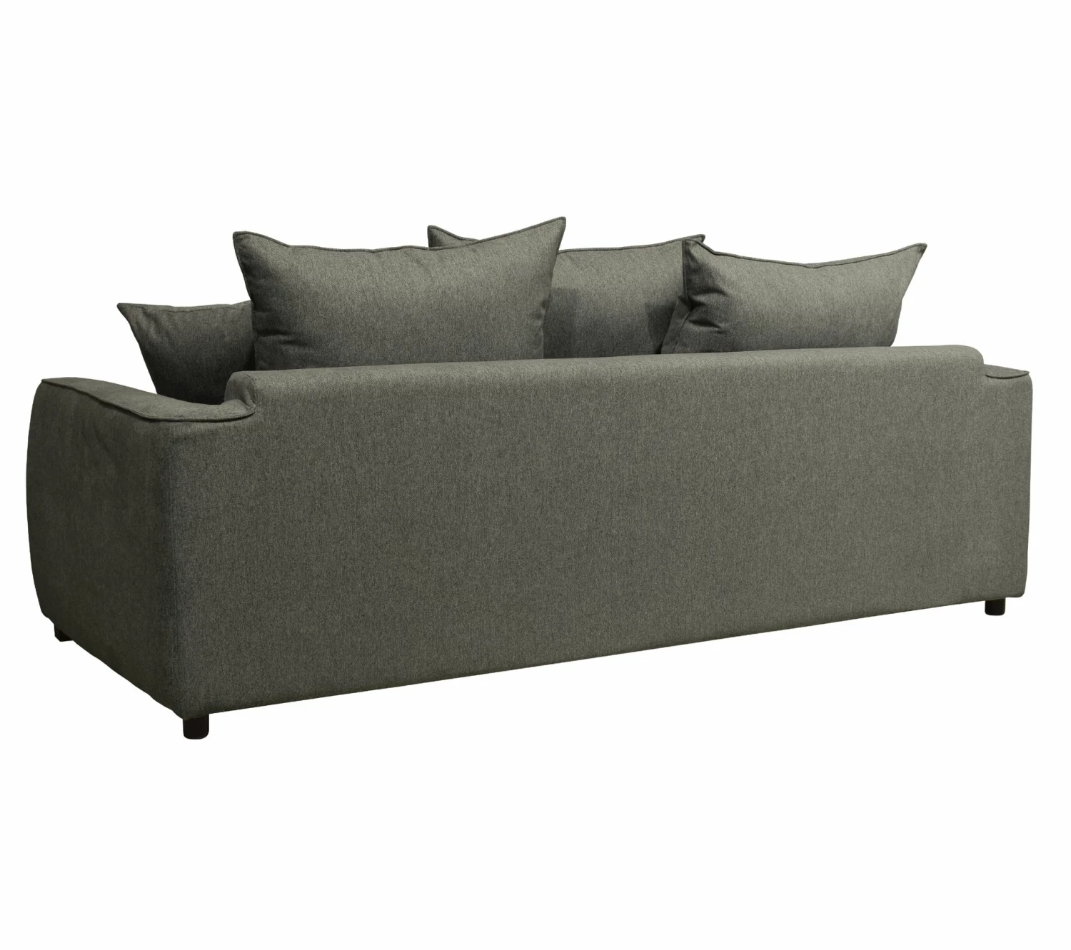Confortable, ce canapé gris graphiteest une invitation au cocooning. D’une belle profondeur, son assise à la fois ferme et moelleuse est garnie d’une mousse polyéther d’une densité de 28 kg/m³. Très enveloppant, ce canapé inclut desaccoudoirs et des coussins de dos en flocons de fibres creuses siliconées.