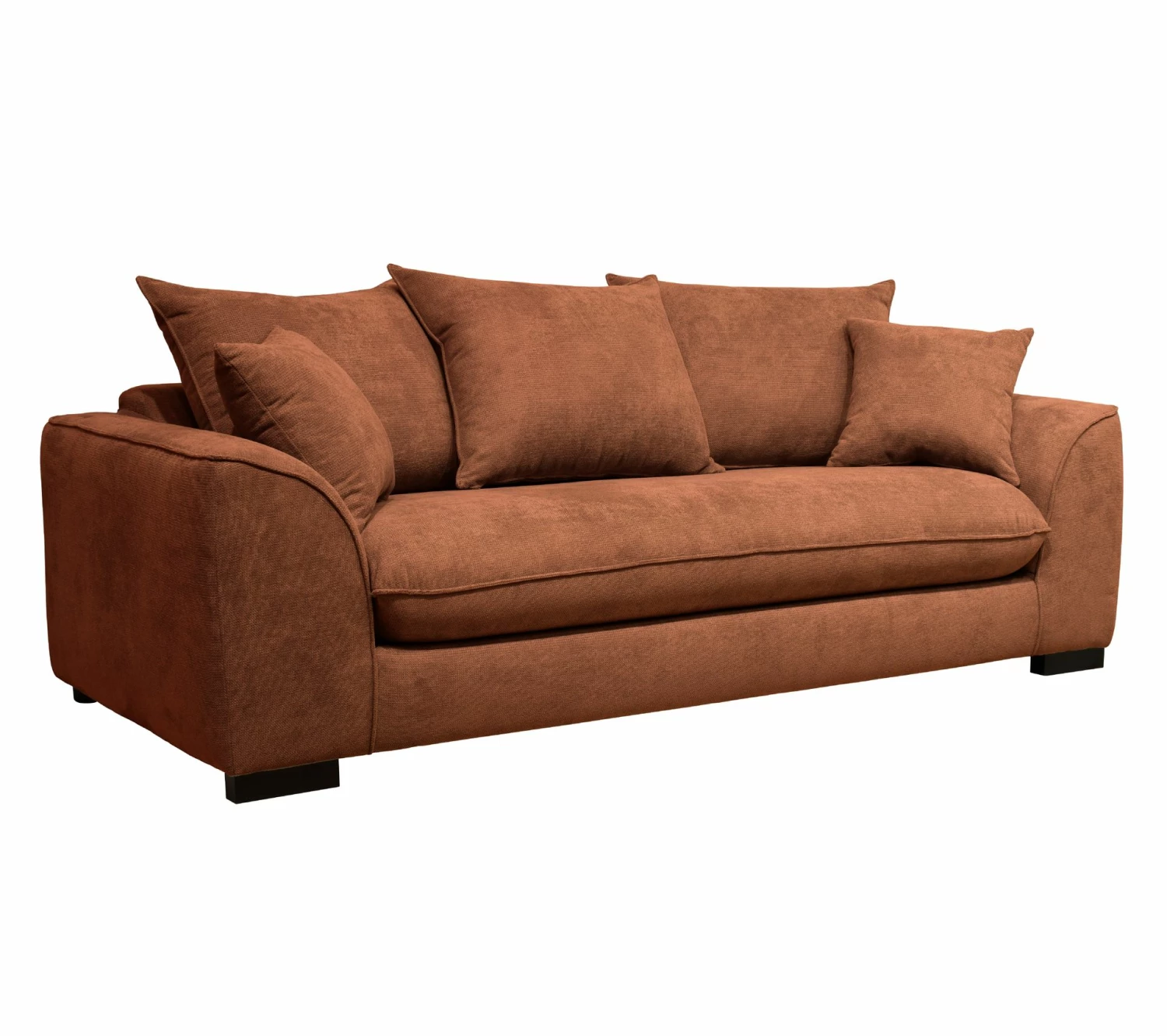 Le canapé SAGA est un modèle simple et élégant qui s’associera facilement à la décoration de votre salon. Il se distingue par ses accoudoirs légèrement arrondis originaux et son dossier composé de cinq coussins. Avec son coloris chaleureux, ce canapé terracotta apportera un côté cosy à votre intérieur.