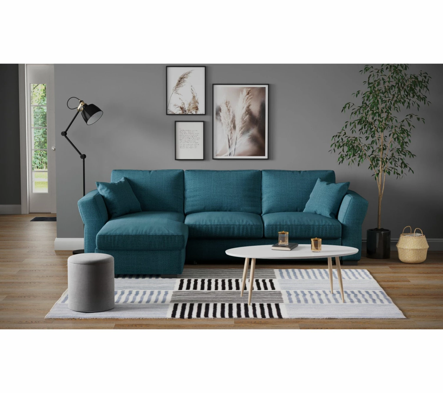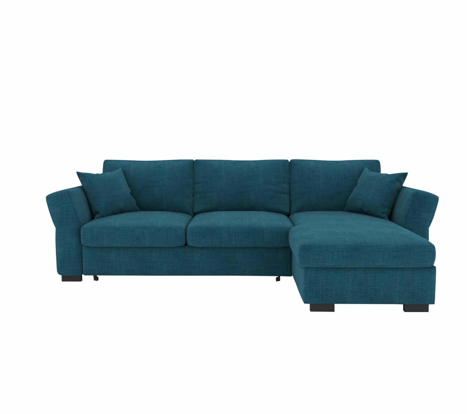 Ce canapé en tissu est le meuble rêvé pour tous ceux qui recherchent un canapé convertible polyvalent. En effet, il dispose d’un système de couchage facile à mettre en place et confortable, ainsi que d’une méridienne réversible et d’un grand coffre de rangement où stocker plaids et coussins.
