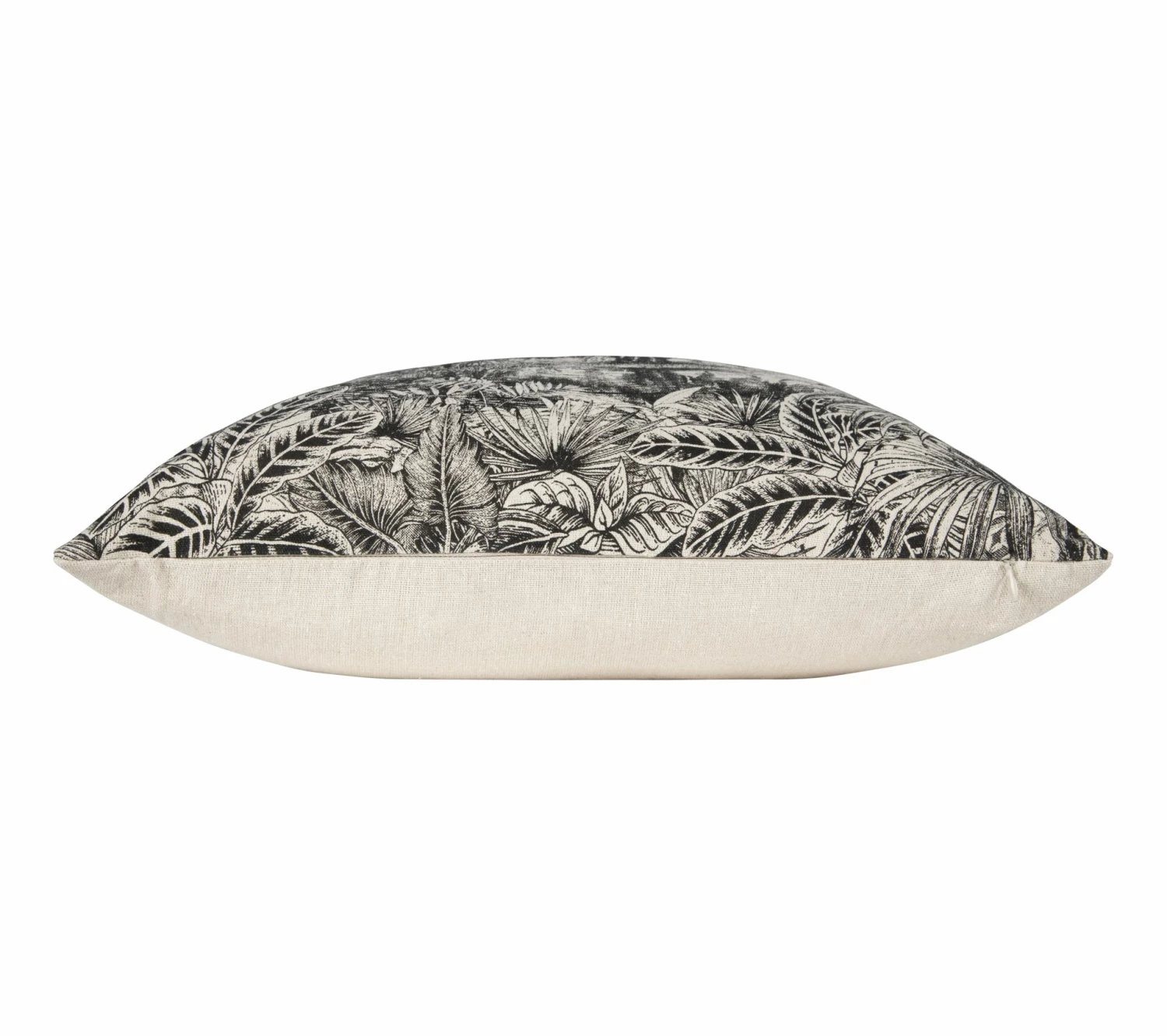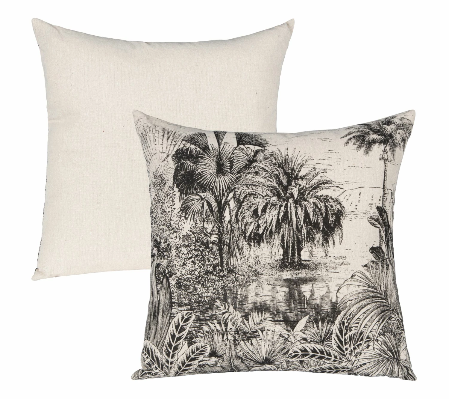 Coussin carré déhoussableLe coussin PALMIERS est composé d’un garnissage en fibres de polyester ainsi que d’une housse en polyester, coton et viscose. L’intérieur du coussin est suffisamment ferme pour soutenir votre dos ou votre cou quand vous vous relaxez dans le fauteuil. La housse est résistante à l’usure et à la lumière, et conserve son joli coloris. Vous pourrez la retirer du coussin pour la laver en machine. Ce coussin de dimensions 45 x 45 cm présente la taille idéale pour décorer un canapé ou un fauteuil. Vous pourrez le combiner avec plusieurs coussins unis pour créer votre décoration personnalisée.Motif effet gravure vintageSur le dessus, ce coussin naturel est orné d’un paysage de palmiers et autres plantes, donnant l’effet d’une gravure. Le dessous du coussin est uni. Ce design à la fois vintage et naturel peut être intégré dans une décoration de style rétro, bohème ou scandinave. Les couleurs sobres de ce coussin carré sont faciles à assortir.