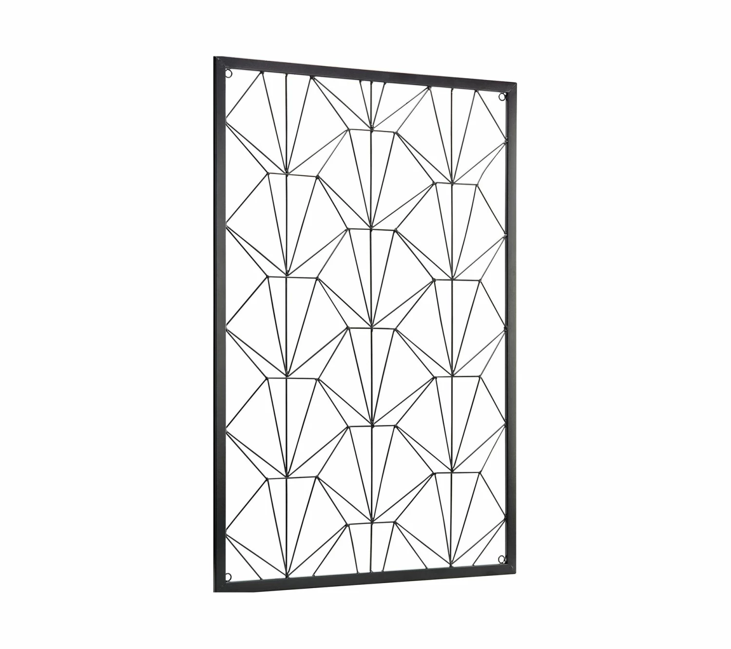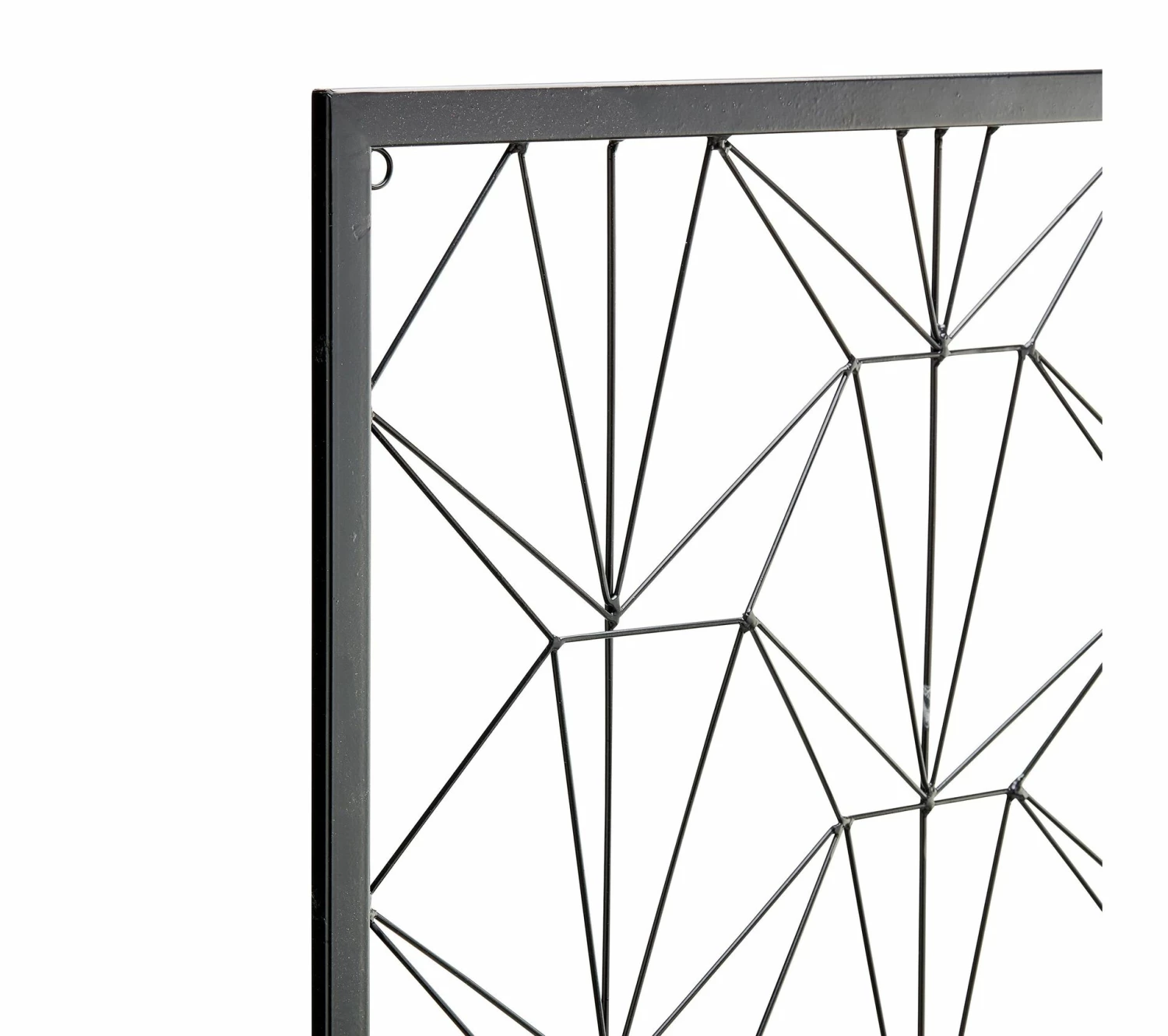 L’alliance du métal et des motifs géométriques de cette décoration murale noire évoque un style Art déco très tendance. Épurées et délicates, ses lignes métalliques viennent apporter élégance et style à votre chambre ou salon. Monochrome, cette déco sait s’intégrer facilement dans tous les types de décorations d’intérieur.