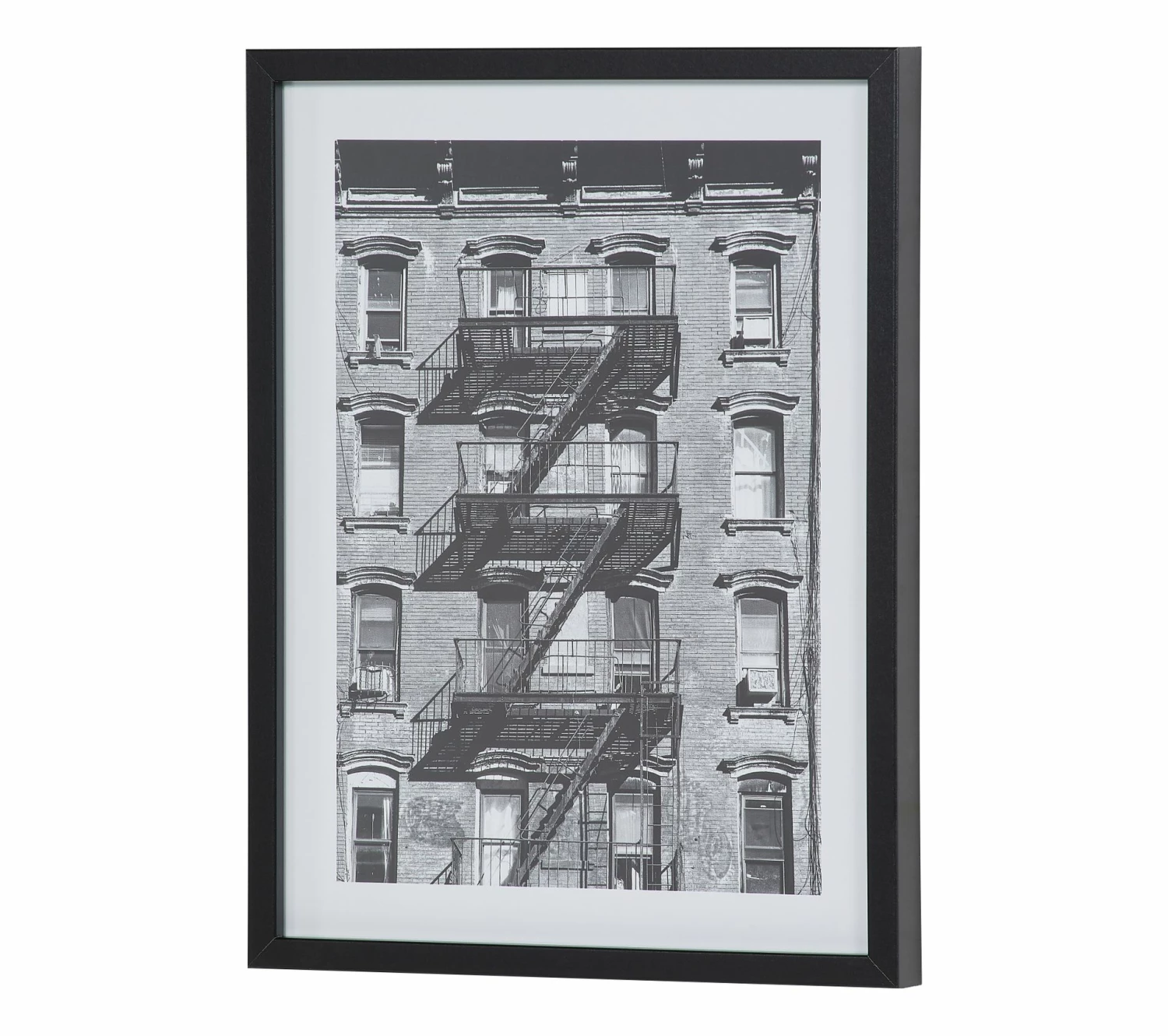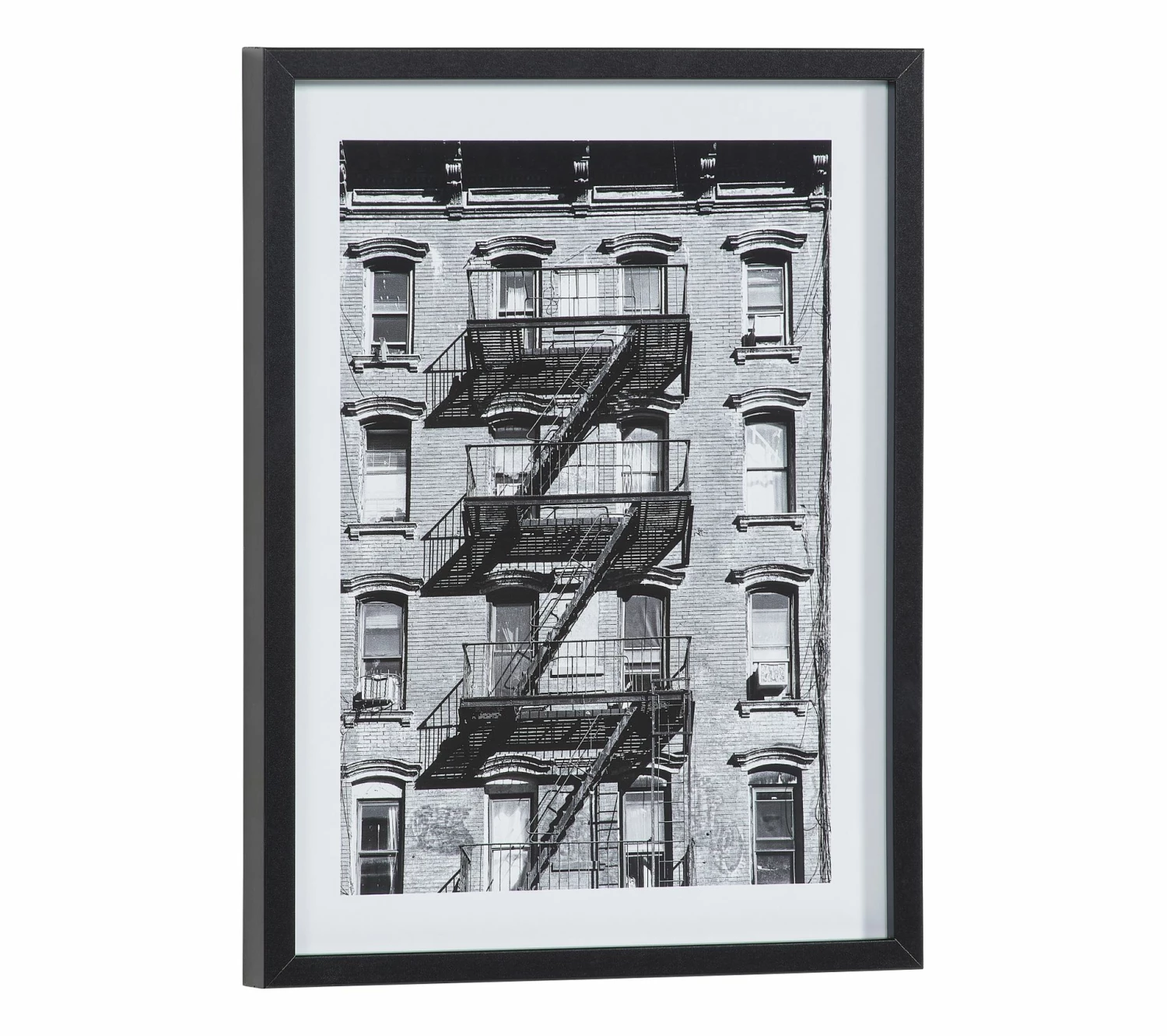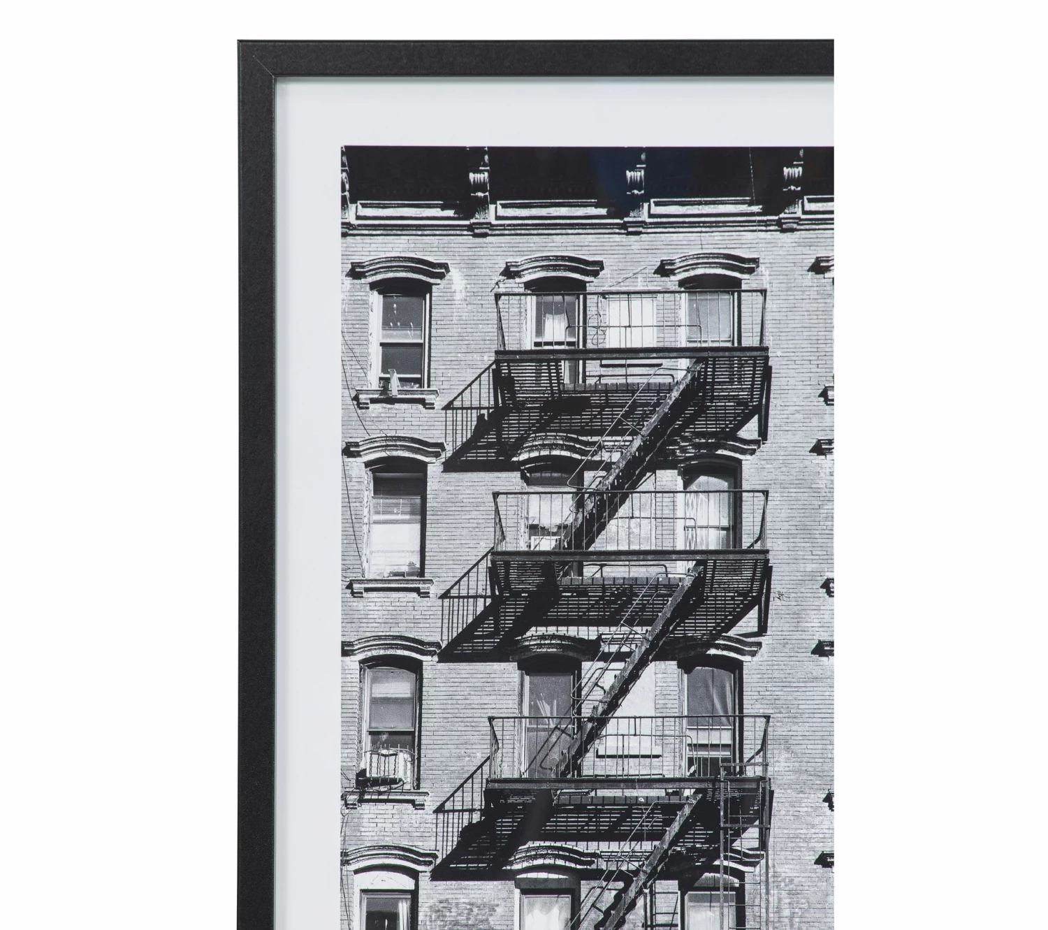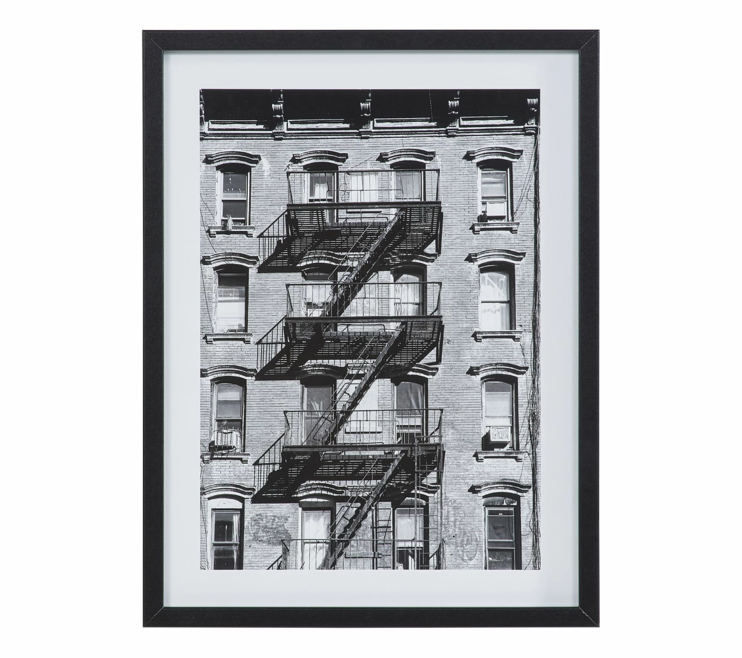 Cette image en noir et blanc est idéale pour donner une touche supplémentaire à l’ambiance rétro de votre intérieur. Mais aussi pour transformer votre salon ou bureau en loft new-yorkais, grâce à la photo de cet escalier de secours grimpant le long d’un immeuble typique des films d’Hitchcock.