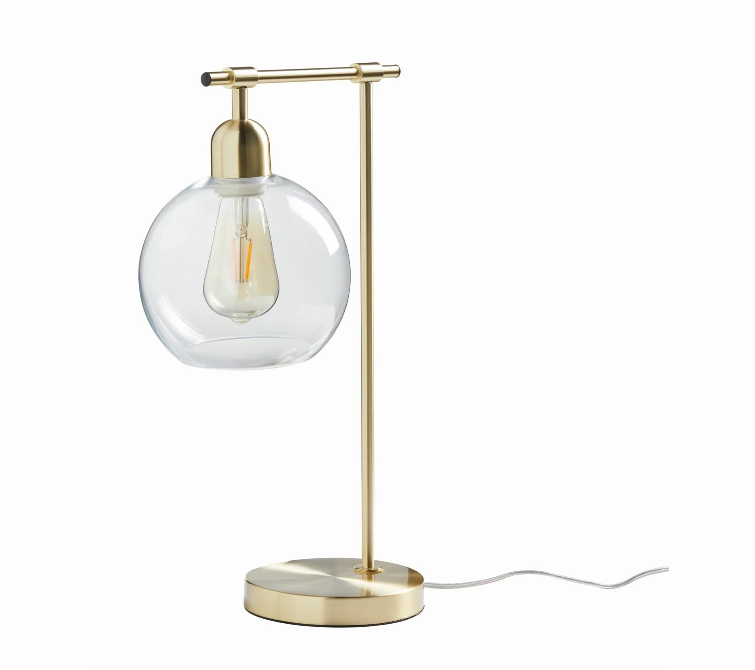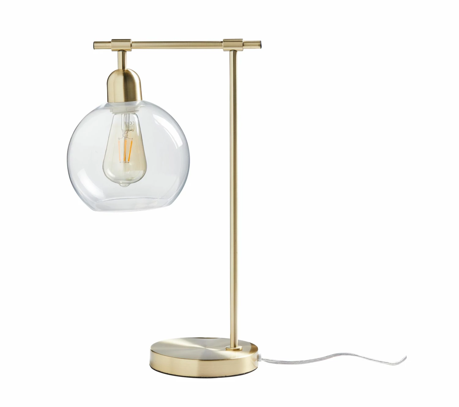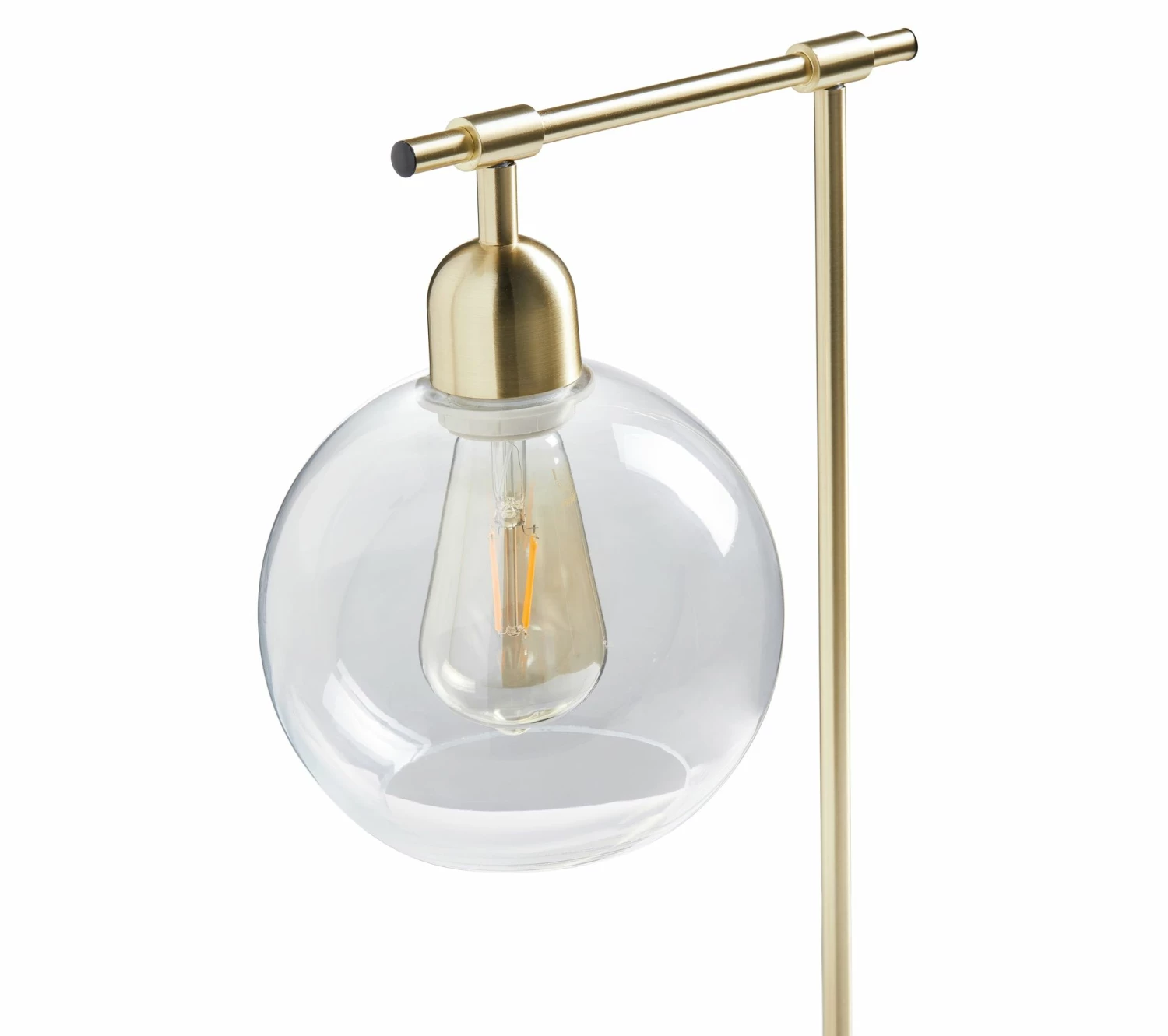 La lampe GOLDY saura vous séduire par son design unique, ses finitions de qualité et sa conception simple et polyvalente. En effet, elle sera parfaite comme lampe de bureau, mais aussi sur une table de chevet, sur une console de l’entrée ou même sur un buffet du salon… Robuste et durable, cette lampe de 48 cm de hauteur est réalisée en métal à la finition dorée et possède un abat-jour en verre d’un diamètre de 18 cm. Entièrement transparent, ce dernier ne tamise pas l’éclat de l’ampoule. Vous pouvez opter pour l’ampoule de votre choix, à la condition qu’elle ait un culot de type E27 et qu’elle ne fasse pas plus de 25 W.