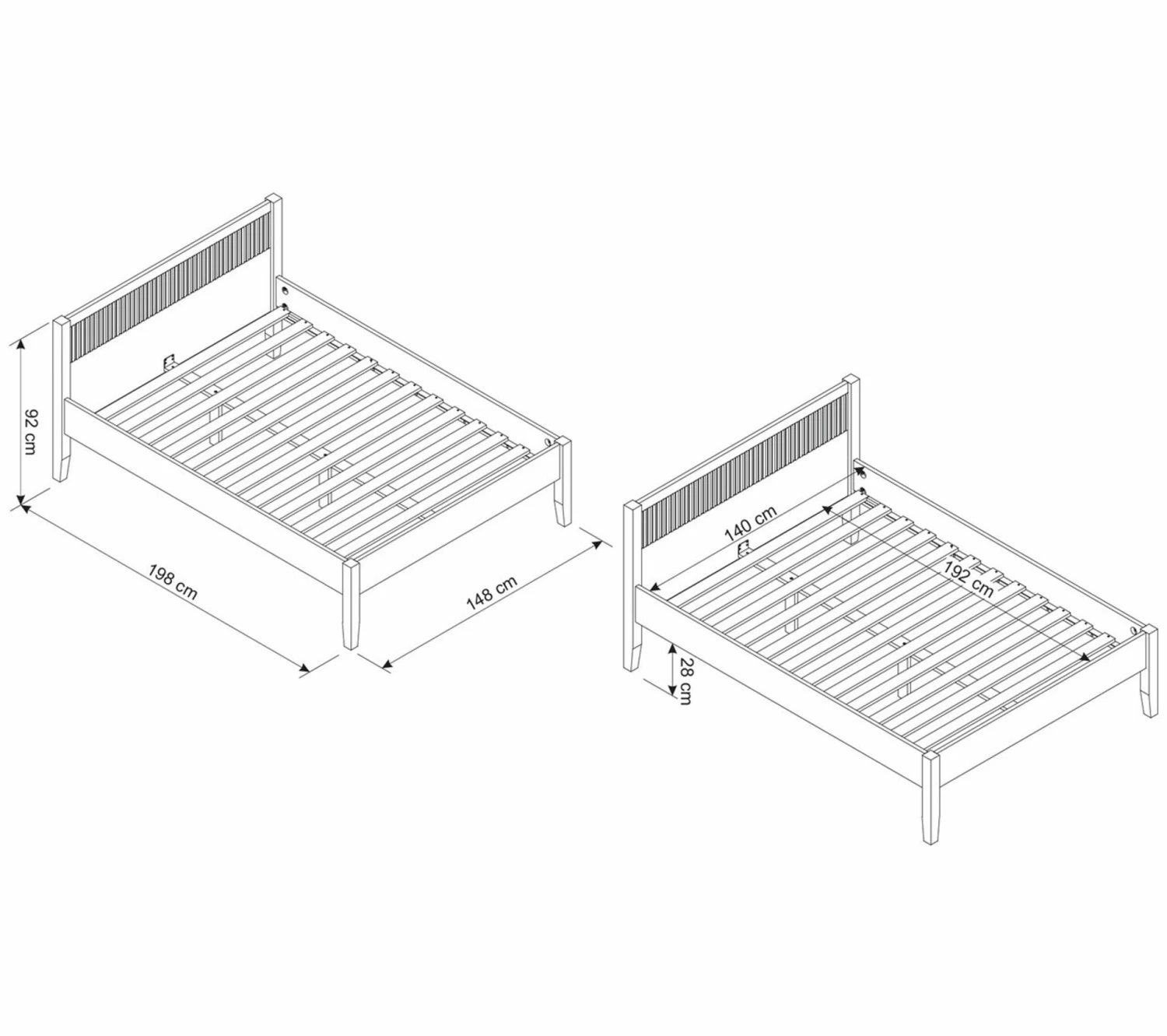 - Couchage en cm 140×190 cm (sans matelas, avec sommier).