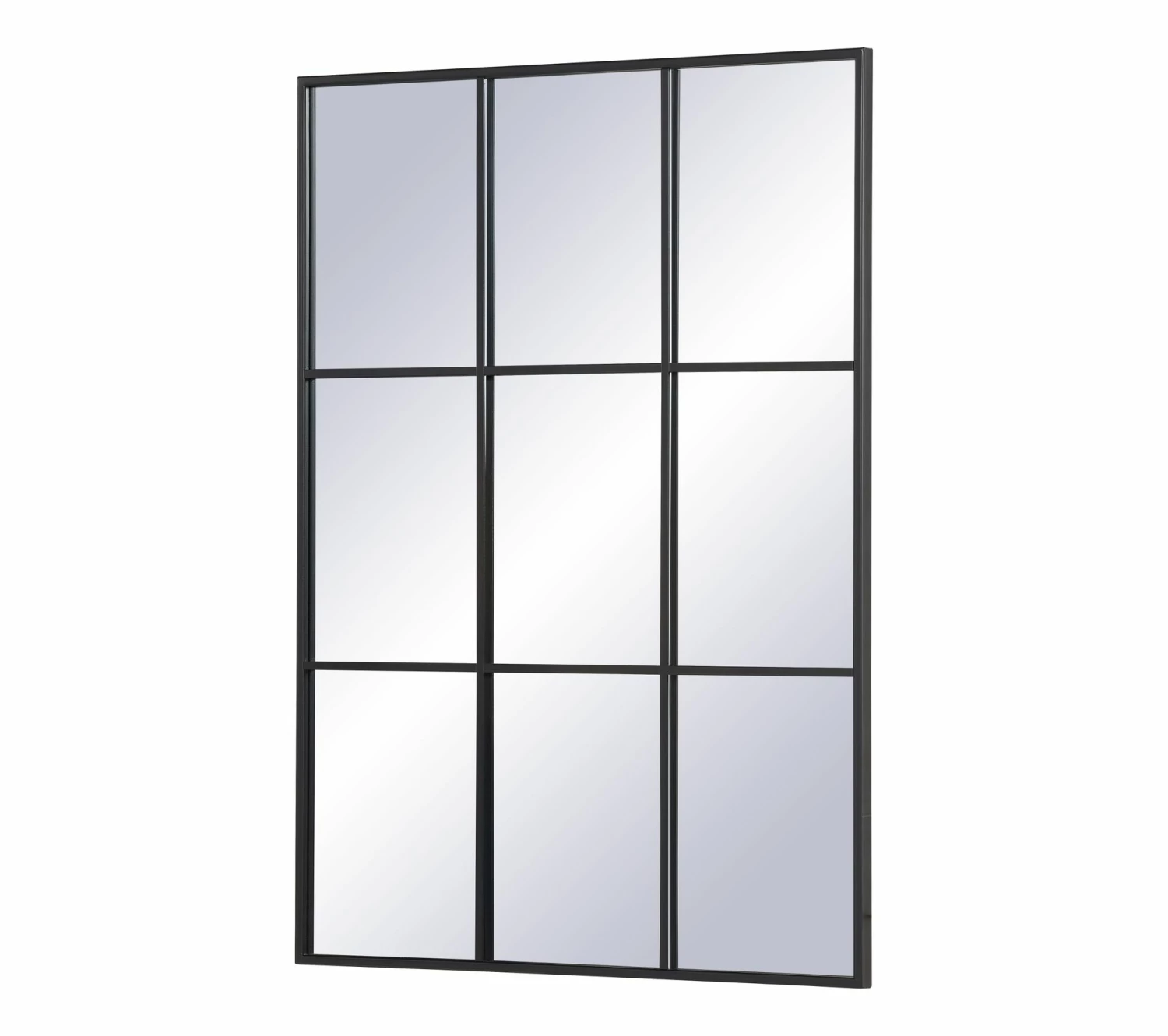 Un miroir pour agrandir la piècePour agrandir vos espaces ou cloisonner une pièce de vie, installez ce superbe miroir RACHELLE à effet verrière. Accroché au-dessus d’un buffet ou de la cheminée, il offre un jeu d’optique original. Dans l’entrée, il apportera de la profondeur à un petit hall. Ce miroir de dimensions 60 x 81 cm est composé de plusieurs sections séparées par des barres en métal. Véritable atout dans la décoration de votre intérieur, ce miroir est parfait pour illuminer une pièce un peu sombre. Pour le nettoyer, utilisez simplement un peu de liquide nettoyant posé sur un chiffon doux et non pelucheux.Un accessoire précieux pour la maisonCréez un décor inspirant avec ce miroir en verre et métal noir. Il s’invite avec élégance dans une bibliothèque, une cuisine ou dans le salon. Sa structure en métal et verre offre une petite touche industrielle à vos espaces de vie. On apprécie son effet trompe-l’?il, ses formes fluides et son effet verrière irrésistible.