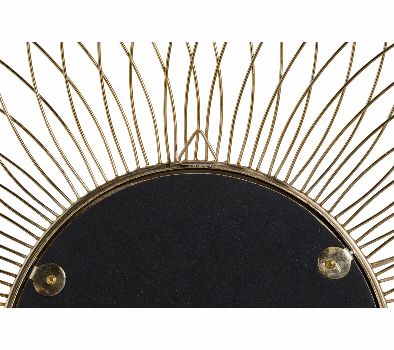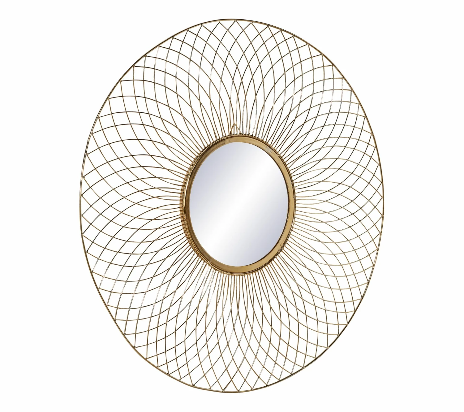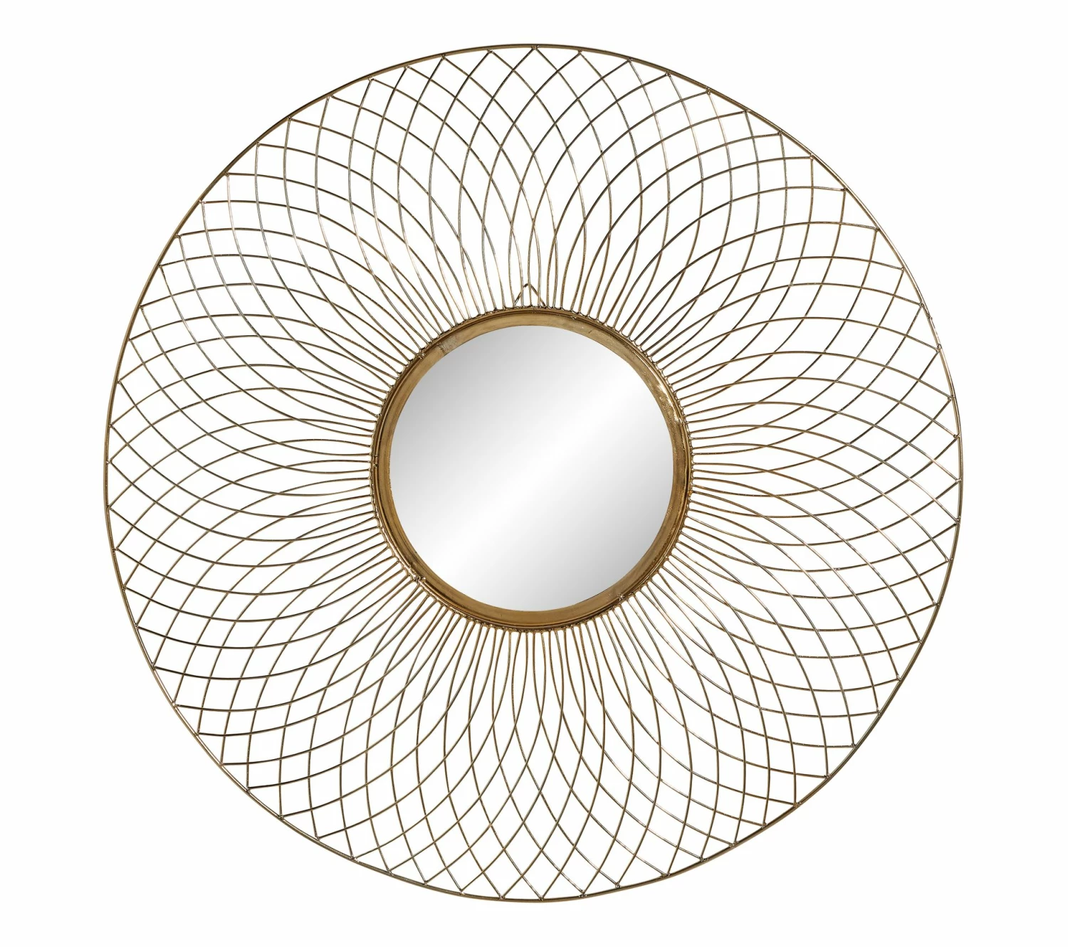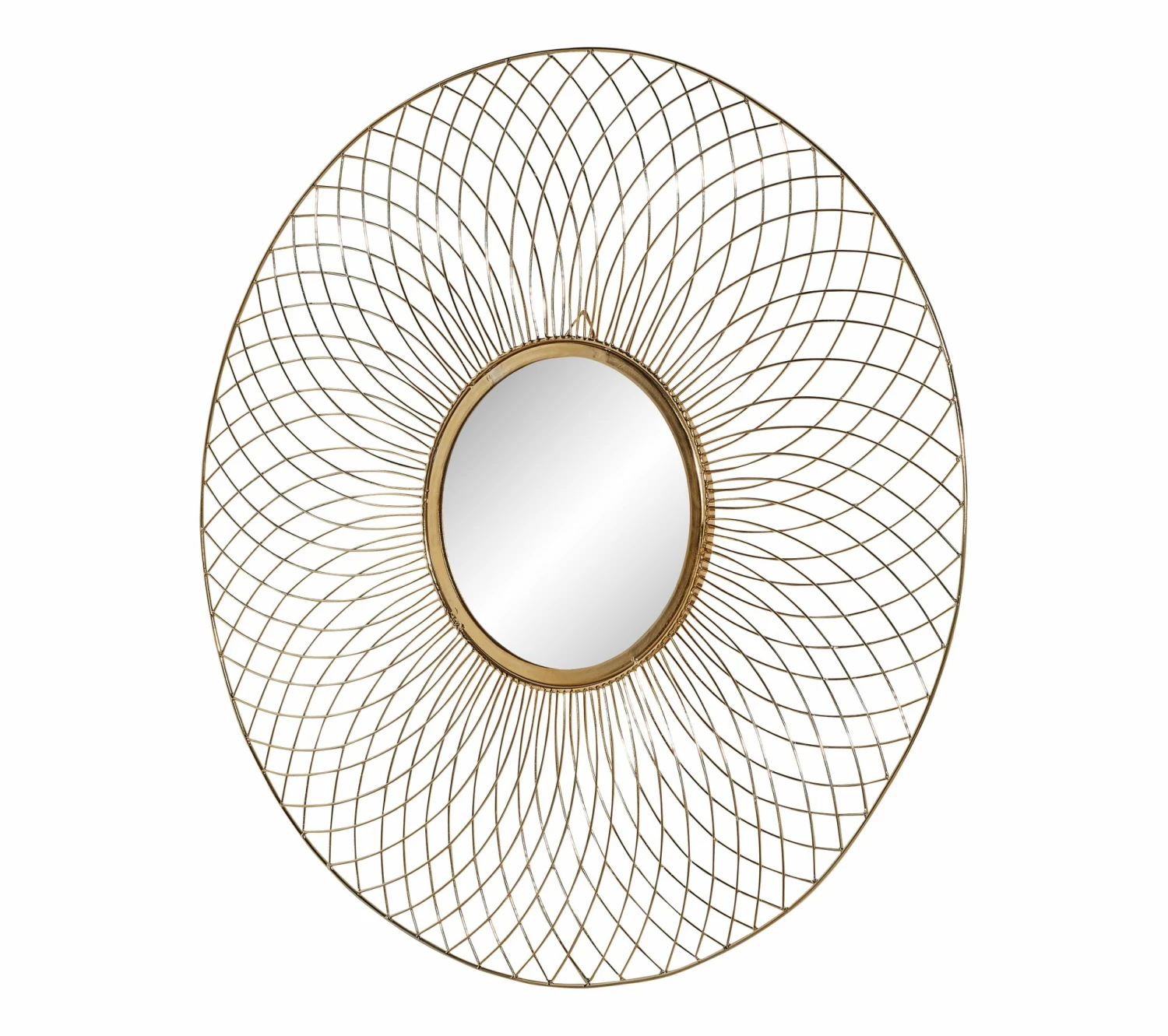 Ce miroir doré se distingue par son encadrement en fils de métal soigneusement entremêlés pour constituer un motif graphique original. Il est idéal dans une décoration un brin vintage, en association avec des meubles en rotin et d’autres accessoires dorés. Combinez plusieurs miroirs identiques pour créer une composition unique.