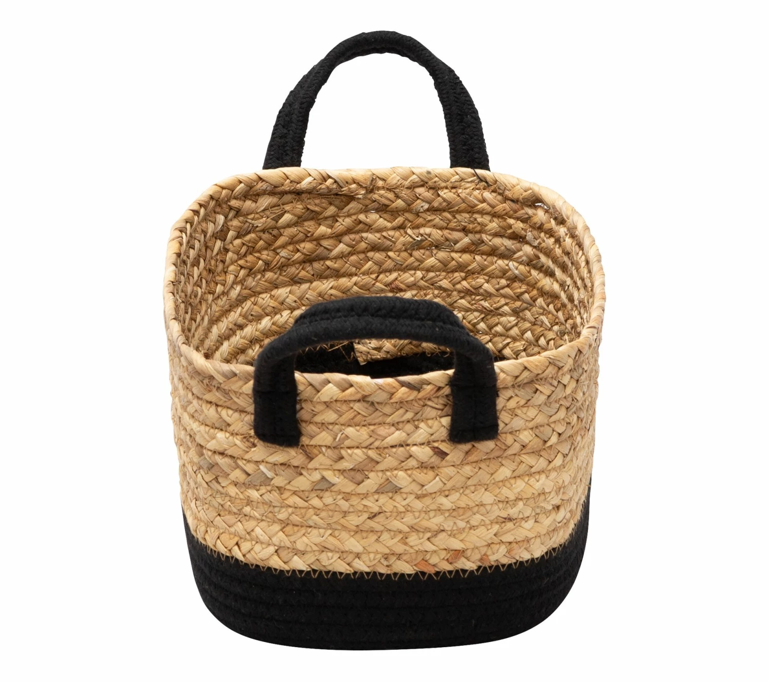 Se composant exclusivement de fibres naturelles – coton et jacinthe d’eau tressée -, ce panier naturel et noir n’est pas seulement bimatière, il peut être également utilisé de deux façons différentes : soit en tant que panier, soit en tant que cache-pot. Écologique et polyvalent, il est muni de deux anses latérales pratiques, qui facilitent son utilisation. Grâce au format discret de ce panier ø 28 x 13 cm, vous pourrez soit le poser sur un support (comme un guéridon ou une étagère) soit le placer directement à terre. Vous entretiendrez sa structure tressée à l’aide d’un simple plumeau.