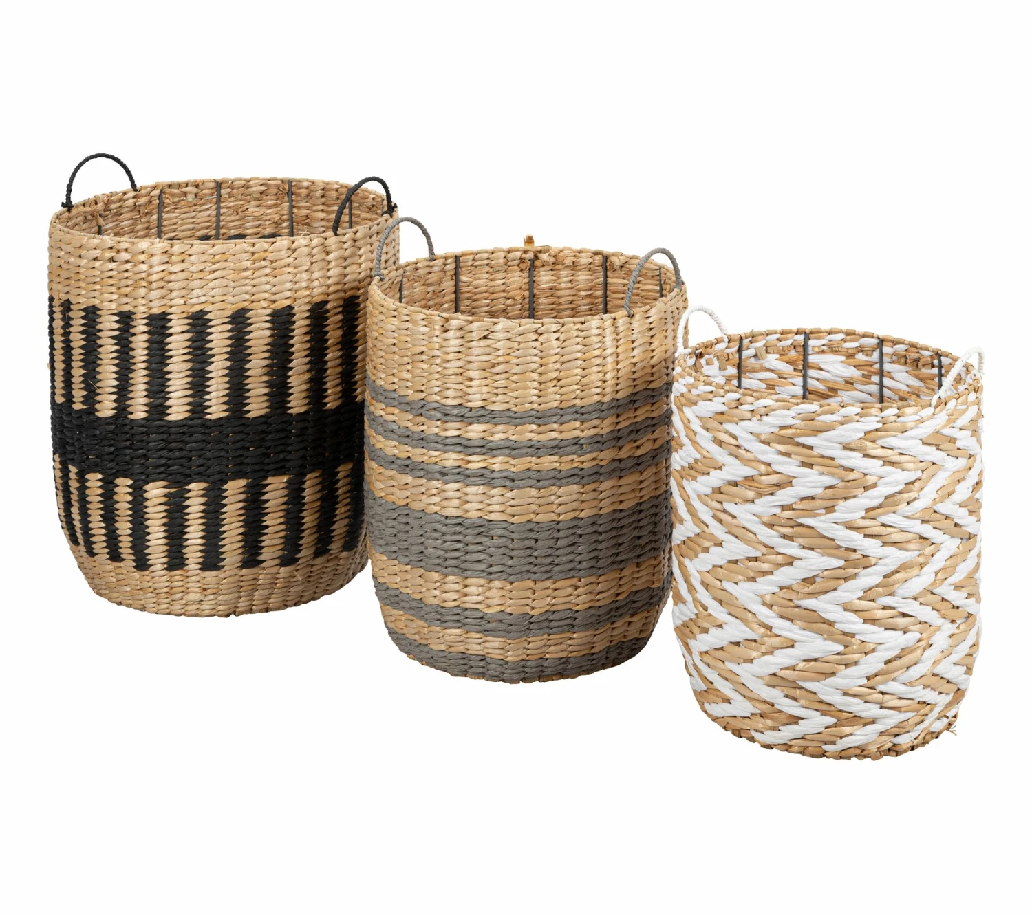 - Structure Paniers set de 3 en jonc, paille de papier et structure en fer.