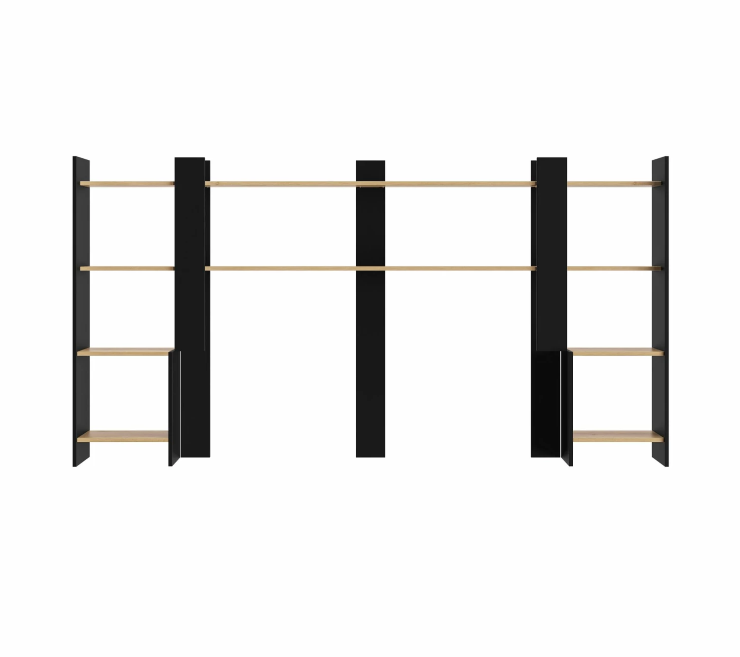 D’inspiration industrielle, ce surmeuble TV noir et boiscomplète un meuble TV bas de mêmes nuances. Son design parfaitement symétrique lui permet de s’associer harmonieusement tant à un décor graphique qu’à un cadre de style urbain. Ce surmeuble TVest l’idéal pour structurer le décor mural du salon.