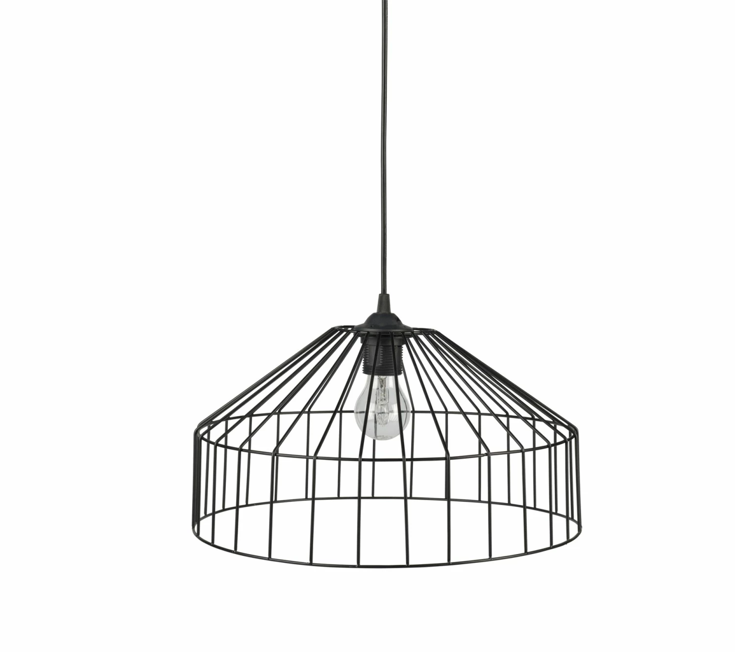 Cette suspension noire est un accessoire aussi facile à poser qu’élégant. Il suffit de fixer le support au plafonnier et d’ajuster la longueur du fil en fonction de la hauteur de la pièce et de vos goûts. La structure de ce luminaire est composée de fils de fer teints en noir mat qui laissent voir l’ampoule. Cette suspension de 38 cm de diamètre et de 19,5 cm de hauteur s’installera aisément dans le lieu de votre choix. Elle est compatible avec toutes les ampoules de type E27 et d’une puissance maximale de 15 watts CFL.