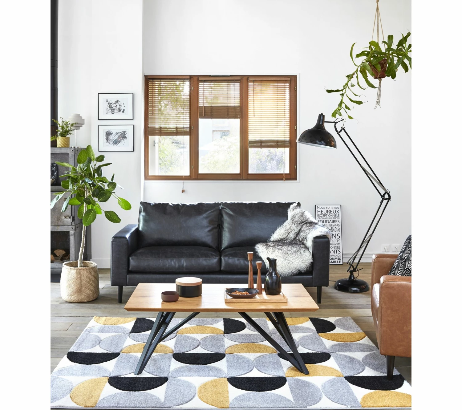 Esprit cosy et chaleureux pour la table basse noire et imitation chêne Andrea. Idéal pour structurer le salon en un clin d’?il, ce meuble permet de créer un espace convivial dédié au cocooning et aux partages. Rectangulaire, cette table présente un large plateau associé à un piètement graphique et oblique. Les dimensions de cette table basse de L 110 x H 42 x P 60 cm s’adaptent à tous les espaces et à toutes les configurations : que ce soit pour un plateau TV ou pour poser des magazines et des objets de décoration. Facile à nettoyer, cette table s’entretient à l’aide d’un chiffon légèrement humide.