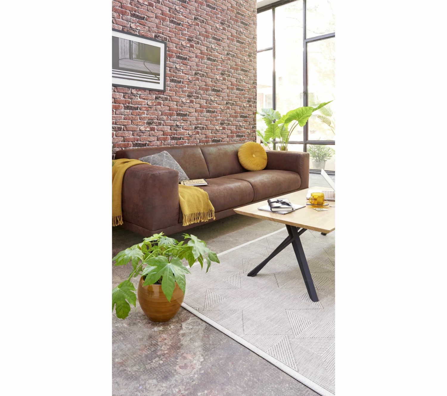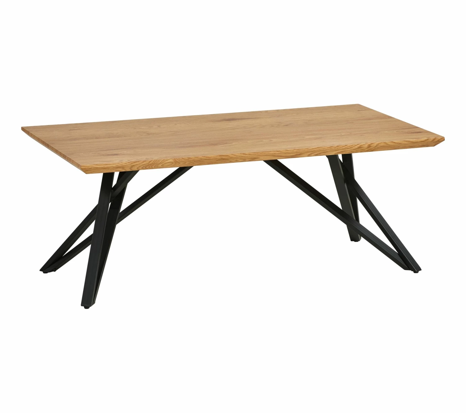 Avec son plateau biseauté recouvert de papier décor imitation chêne et son piètement oblique en tubes noirs en acier, cette table basse Andrea offre des courbes à votre intérieur. Son design contrastant qui associe l’effet bois au métal apporte du caractère à une pièce à la déco industrielle ou vintage.