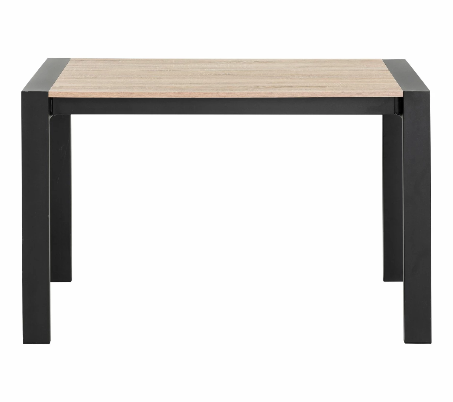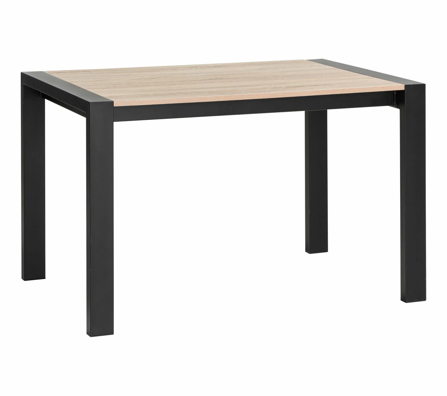 Grâce à son allonge de 40 cm, cette table de dimensions L. 120 x H. 76 x P. 80 cm vous séduira par sa flexibilité. Fermée, elle accueille toute la famille pour les repas du quotidien, ouverte, elle offre 2 places supplémentaires dans le cadre d’un dîner ou d’une fête. Le plateau escamotable est invisible lorsqu’il est replié et le mécanisme, en acier, s’actionne en un tournemain. Serti d’un encadrement en acier époxy, comme le piètement, le plateau mélaminé offre une surface solide, résistante à l’humidité et à la chaleur. Grâce à sa robustesse, vous profiterez pendant de longues années de cette table coloris chêne Sonoma et noir.