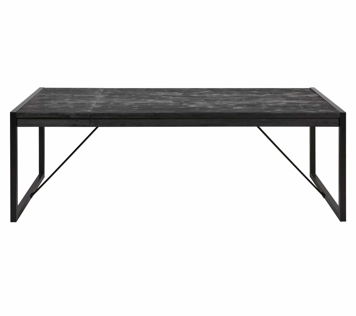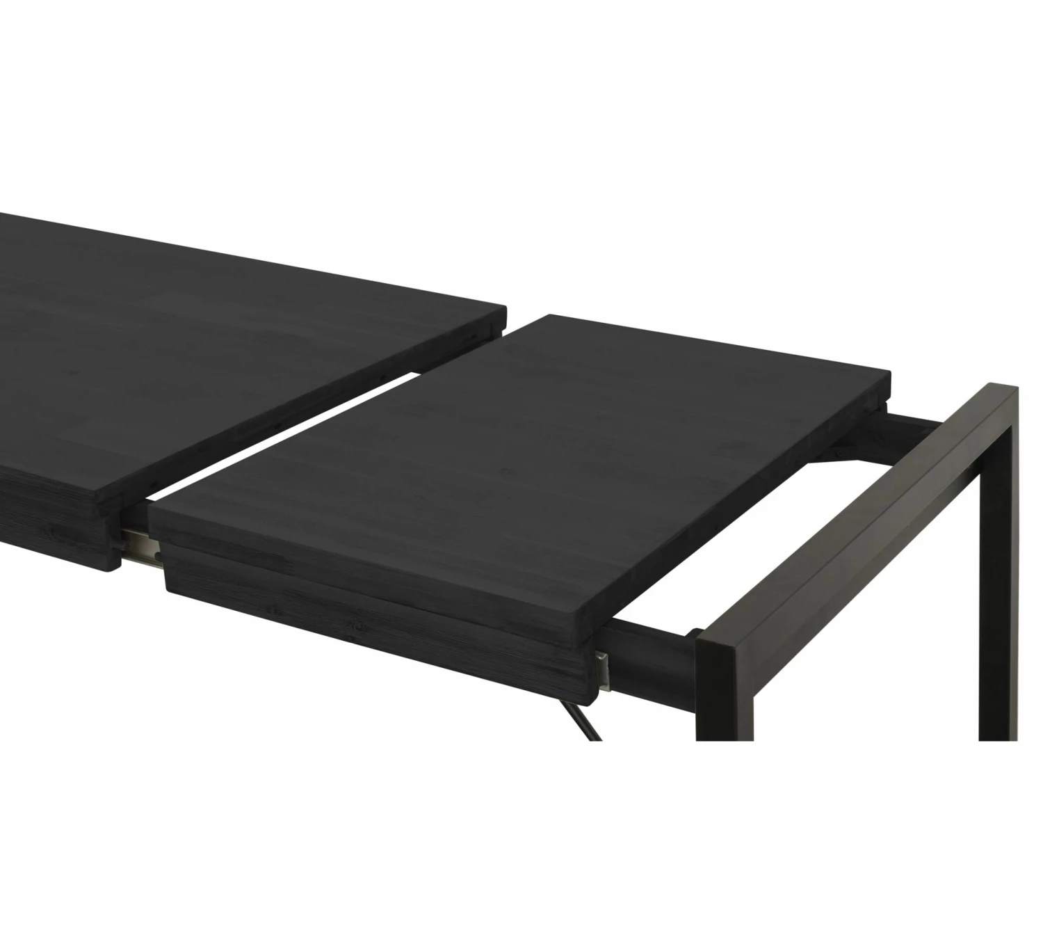 - Structure Pieds en métal noir. Plateau en acacia massif peinture noir.Epaisseur plateau 4cm. Allonge de 50 cm.