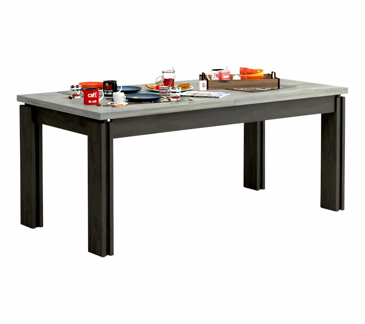 De forme rectangulaire, cette table imitation chêne et griseaffiche un design moderne. Grâce à ses lignes épurées, elle s’intègre dans tous les styles d’intérieurs. Vous pouvez compléter cette table de L. 180/225 x H. 77 x P. 90 cmavec des chaises et un buffet de la même collection.