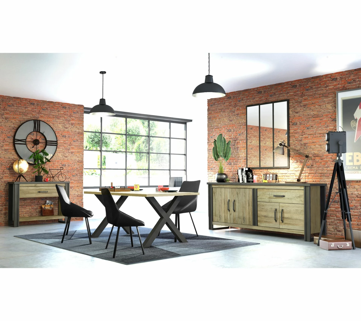 Grâce à ses lignes épurées, cette table imitation chênes’accorde avec tous les types d’intérieur. On aime l’inspiration industrielle de l’alliance du métal et du bois. Vous pourrez accorder votre nouvelle tableavec les chaises de votre choix. Pour un rendu harmonieux, complétez votre achat avec un buffet de la même gamme.