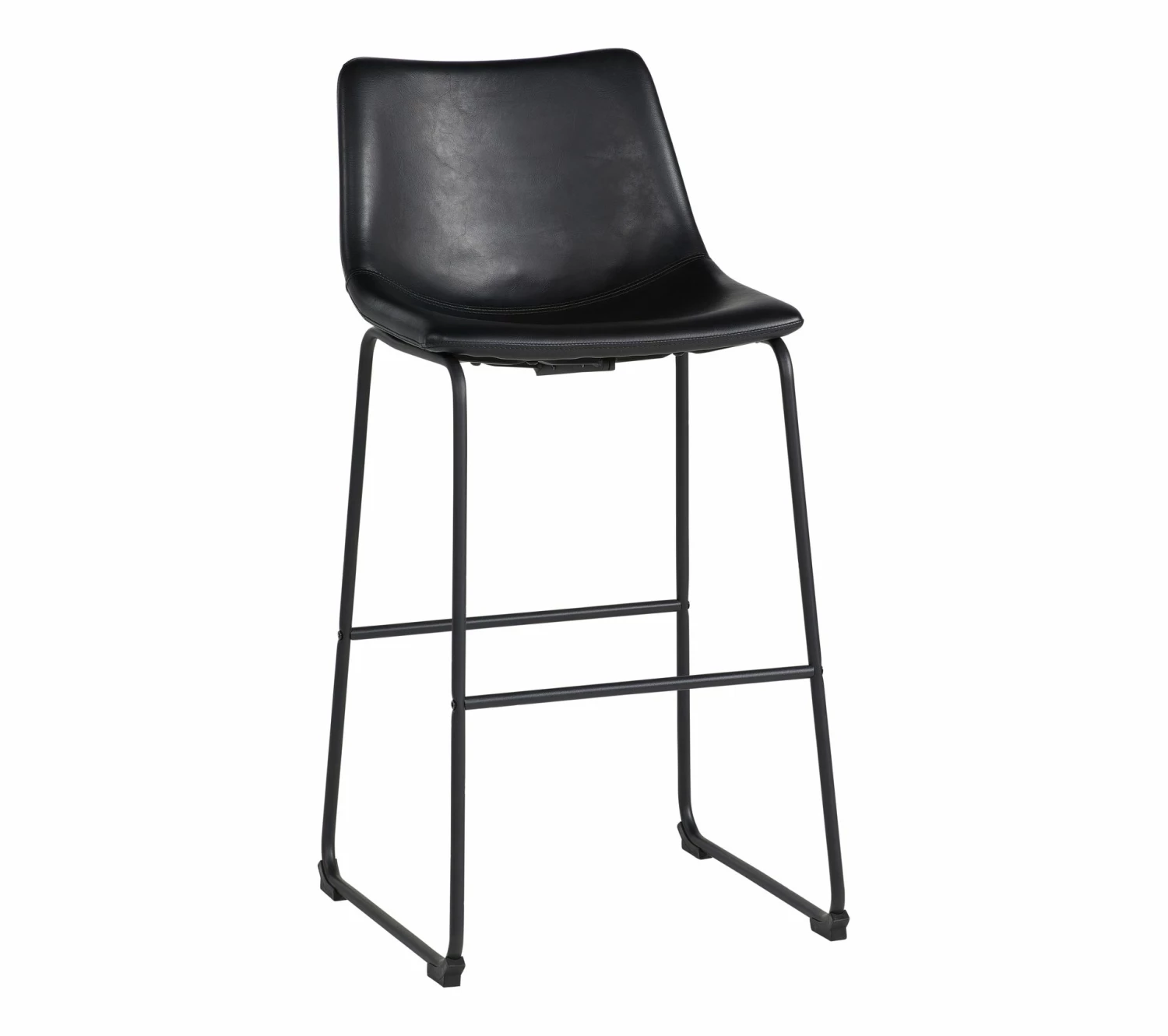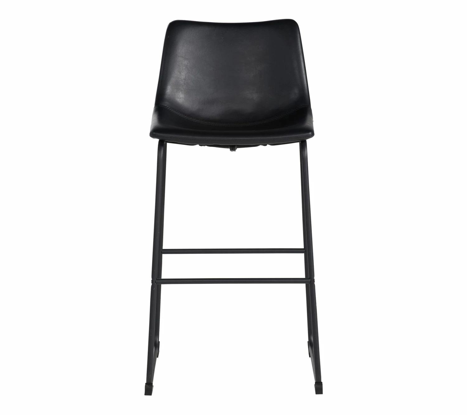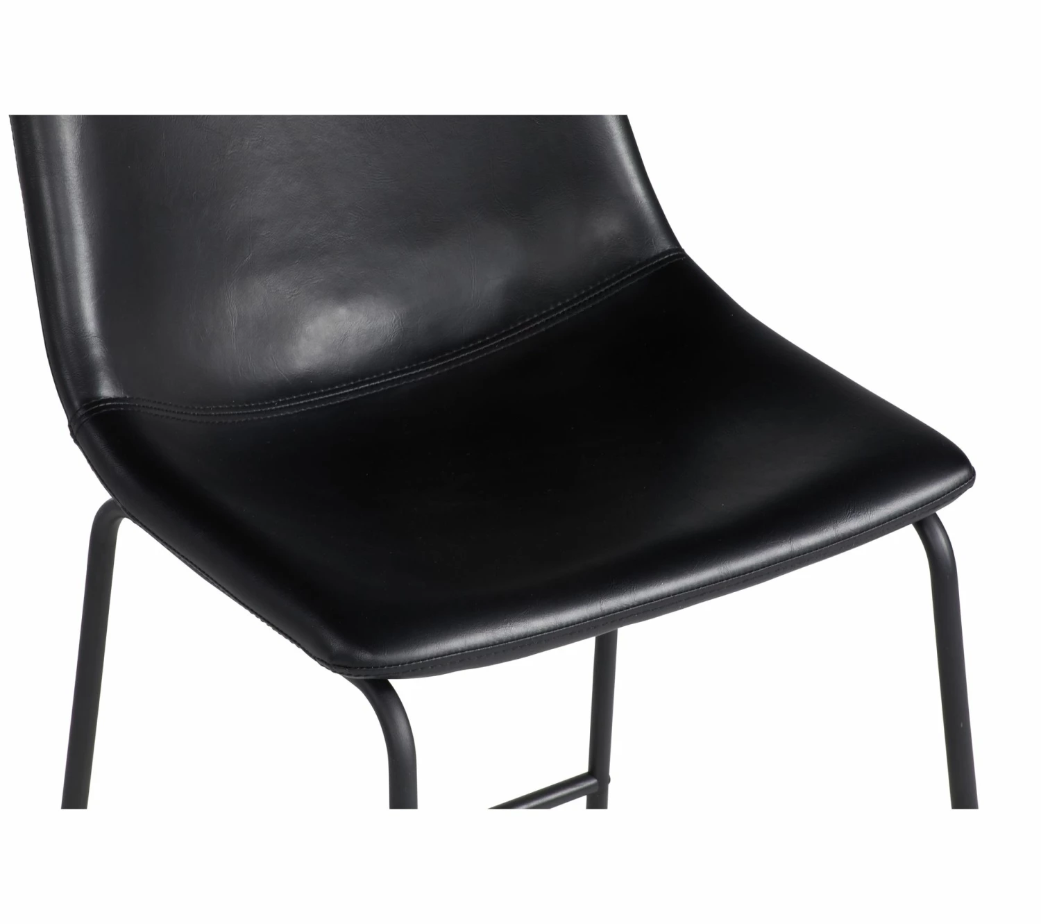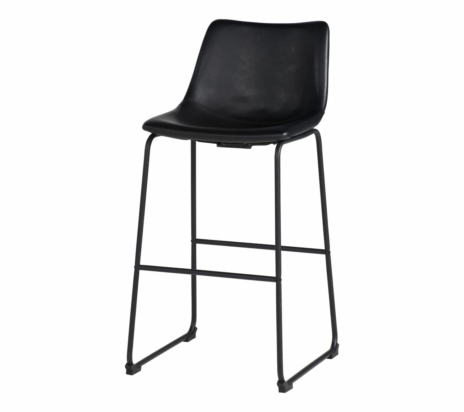 Idéalement à sa place dans une décoration urbaine ou vintage, ce tabouret de bar noir adopte un style industriel. Son piètement en acier est couvert d’une peinture époxy noire, assortie au revêtement en polyuréthane. Seul ou combiné avec d’autres tabourets, il s’associe volontiers avec une table haute en métal.