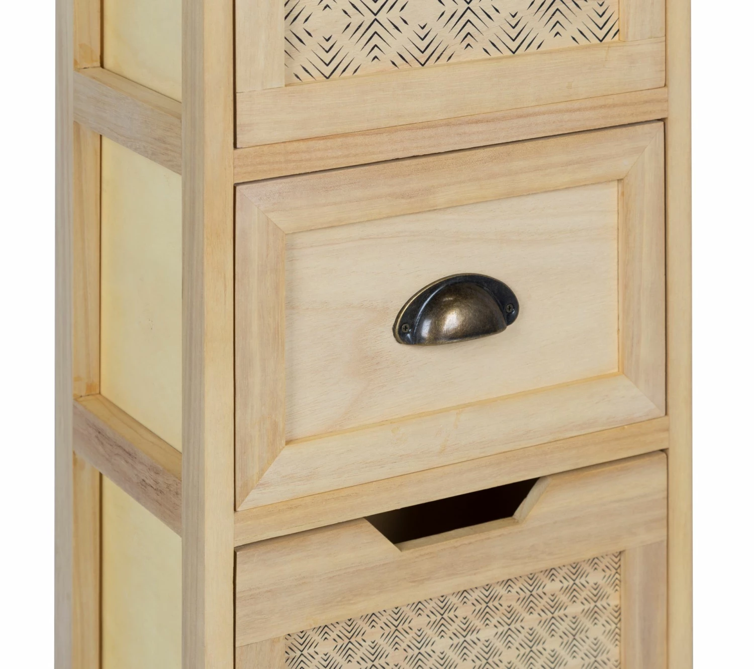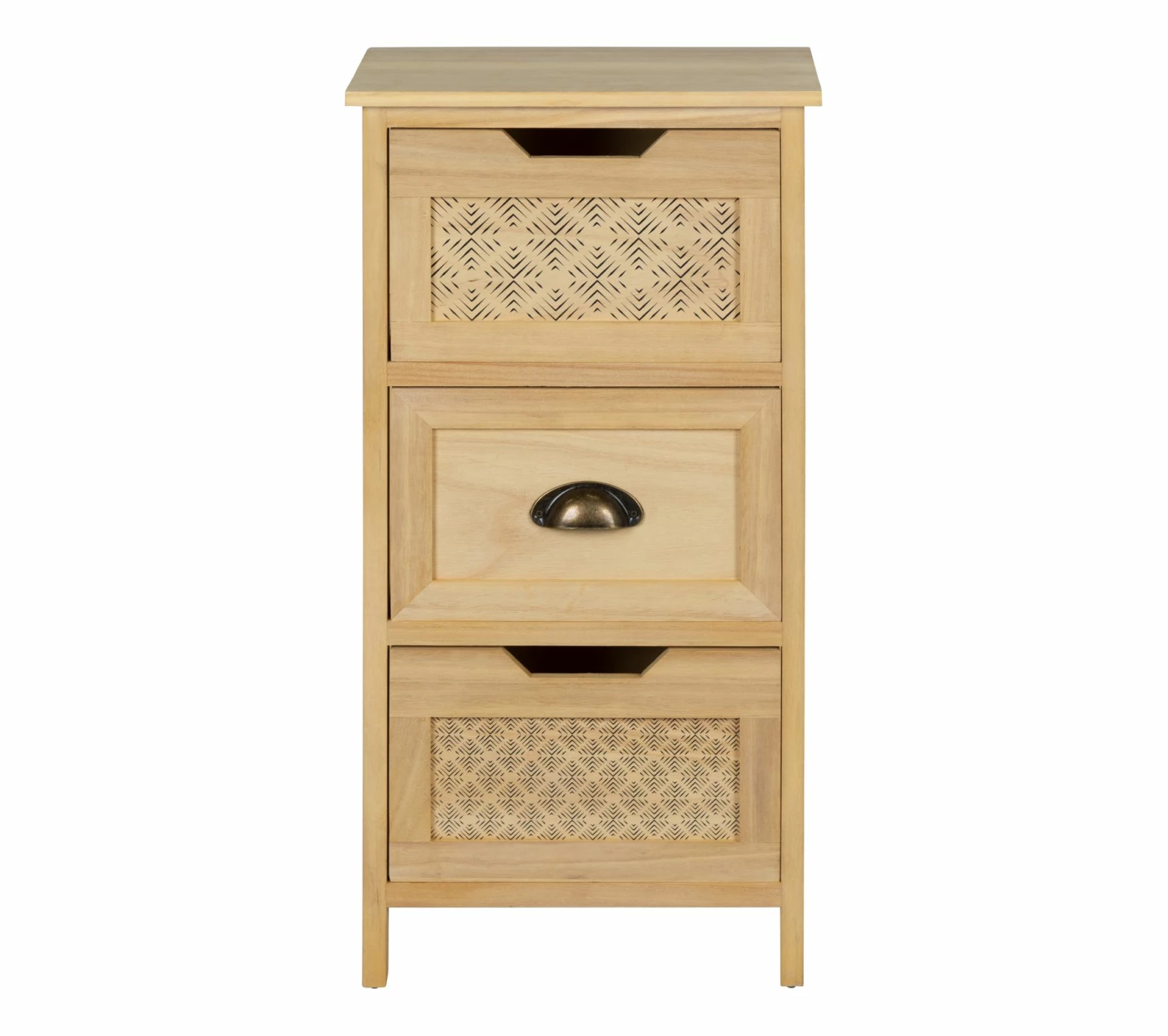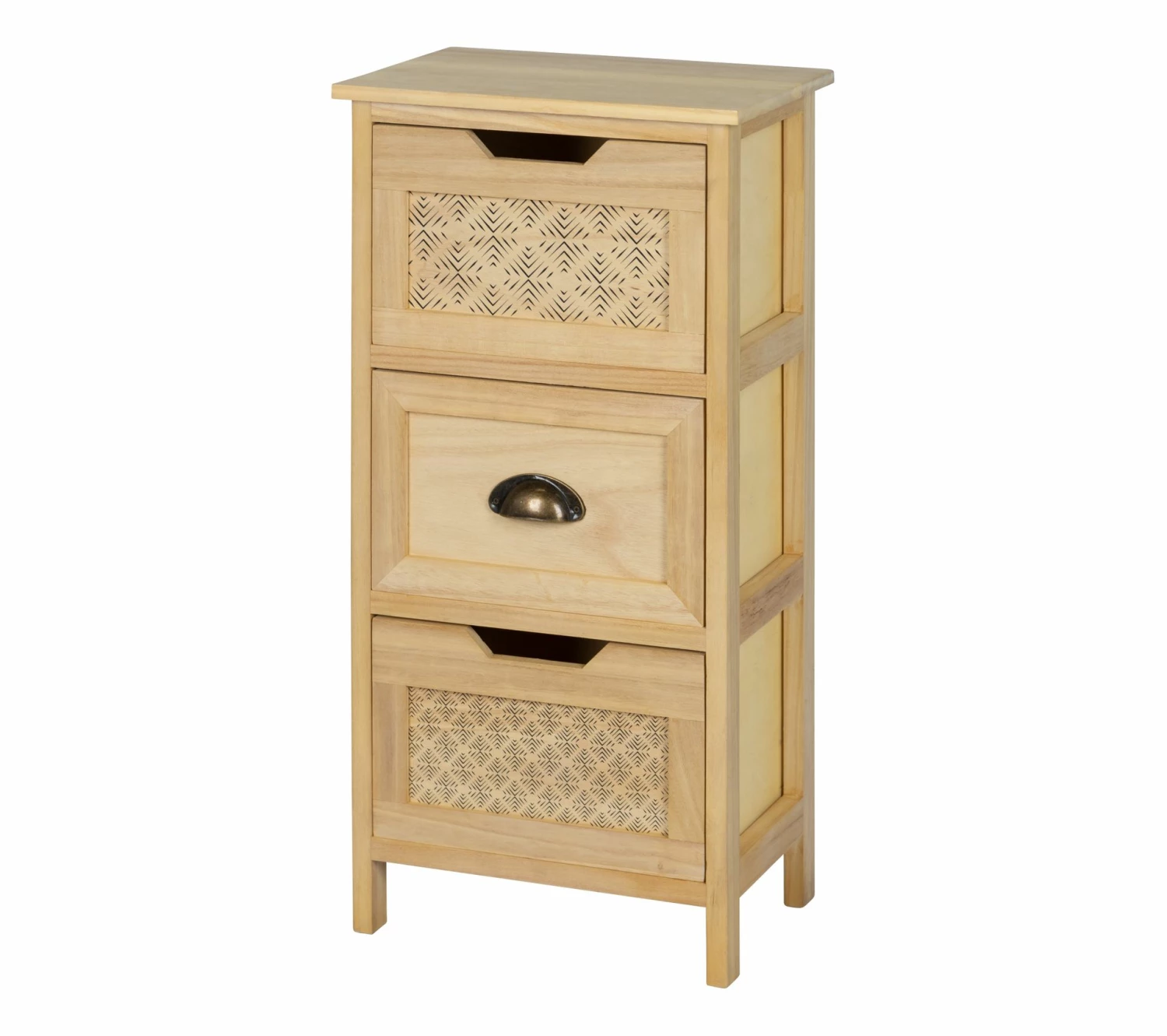 - Structure Meuble d’appoint 3 tiroirs en paulownia et tiroirs en bois contreplaqué.